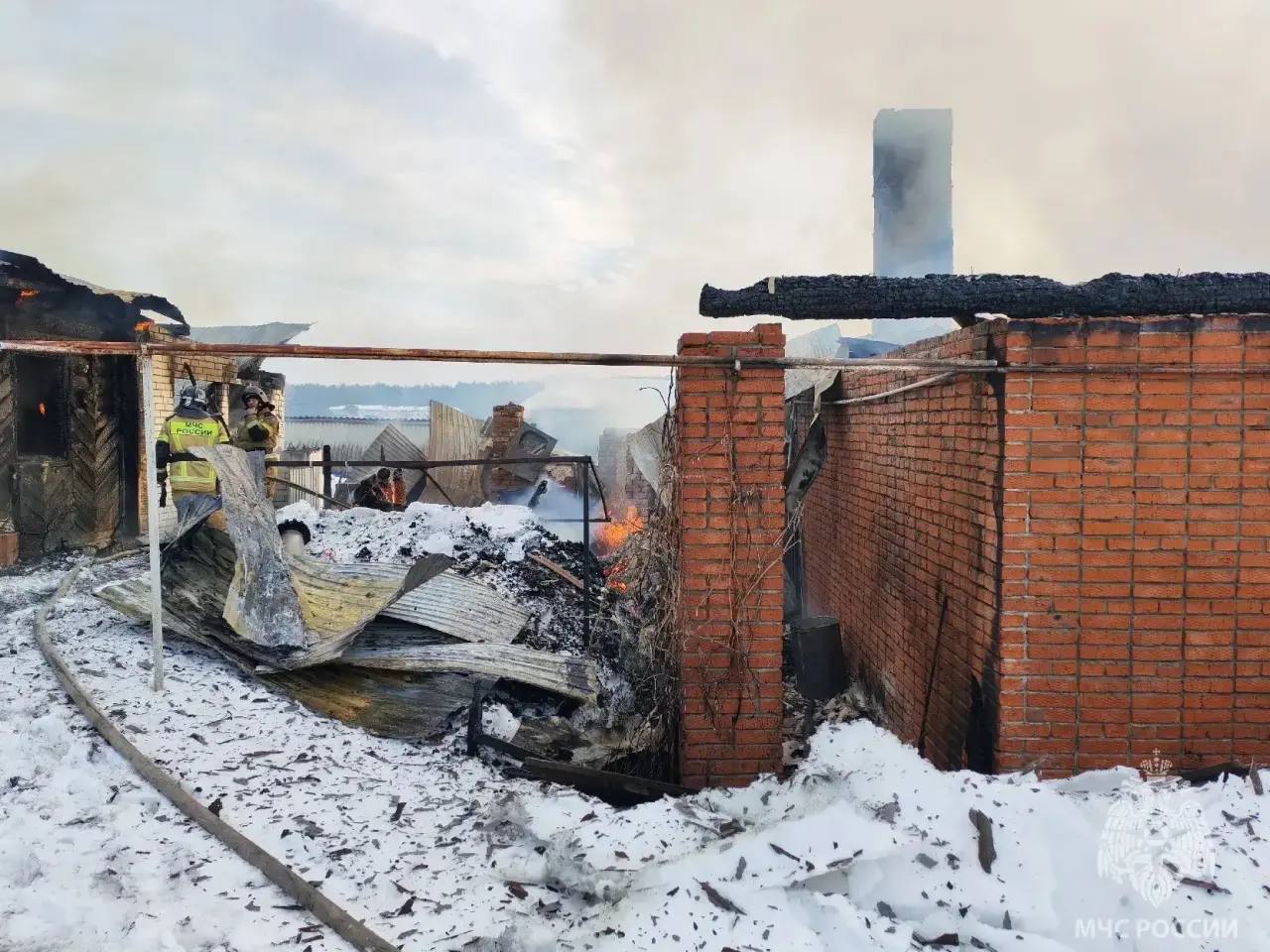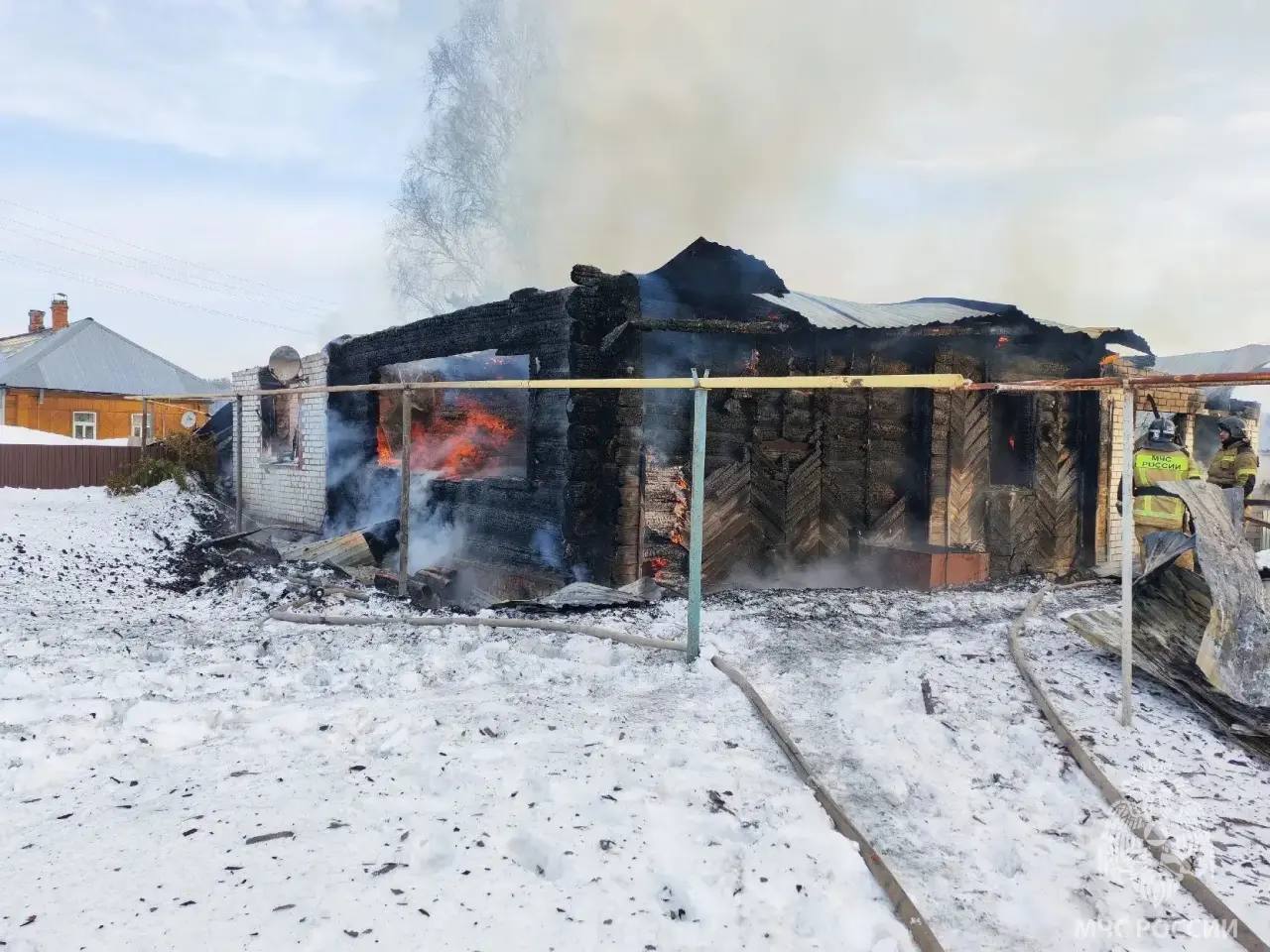 Объектом возгорания стал 2-квартирный жилой дом, расположенный на территории частного хозяйства.Сообщение о случившемся поступило на пульт диспетчера пожарной охраны в 04:20.