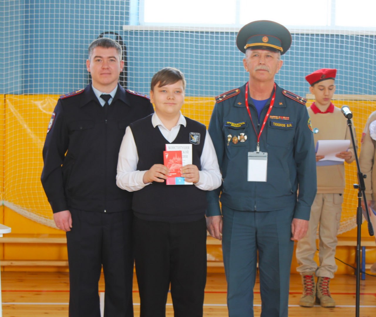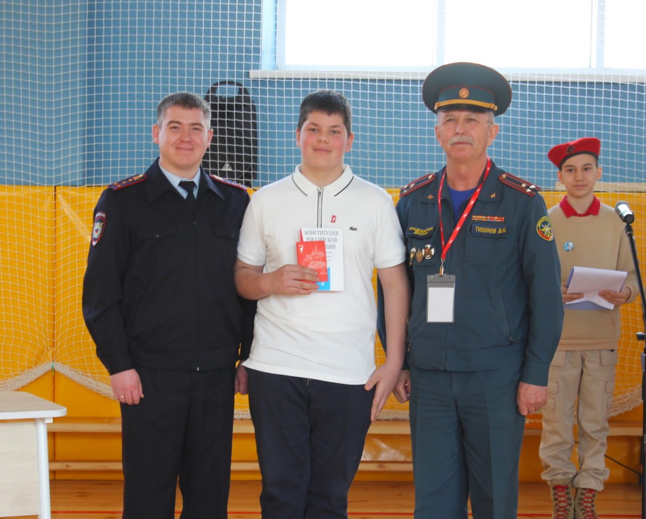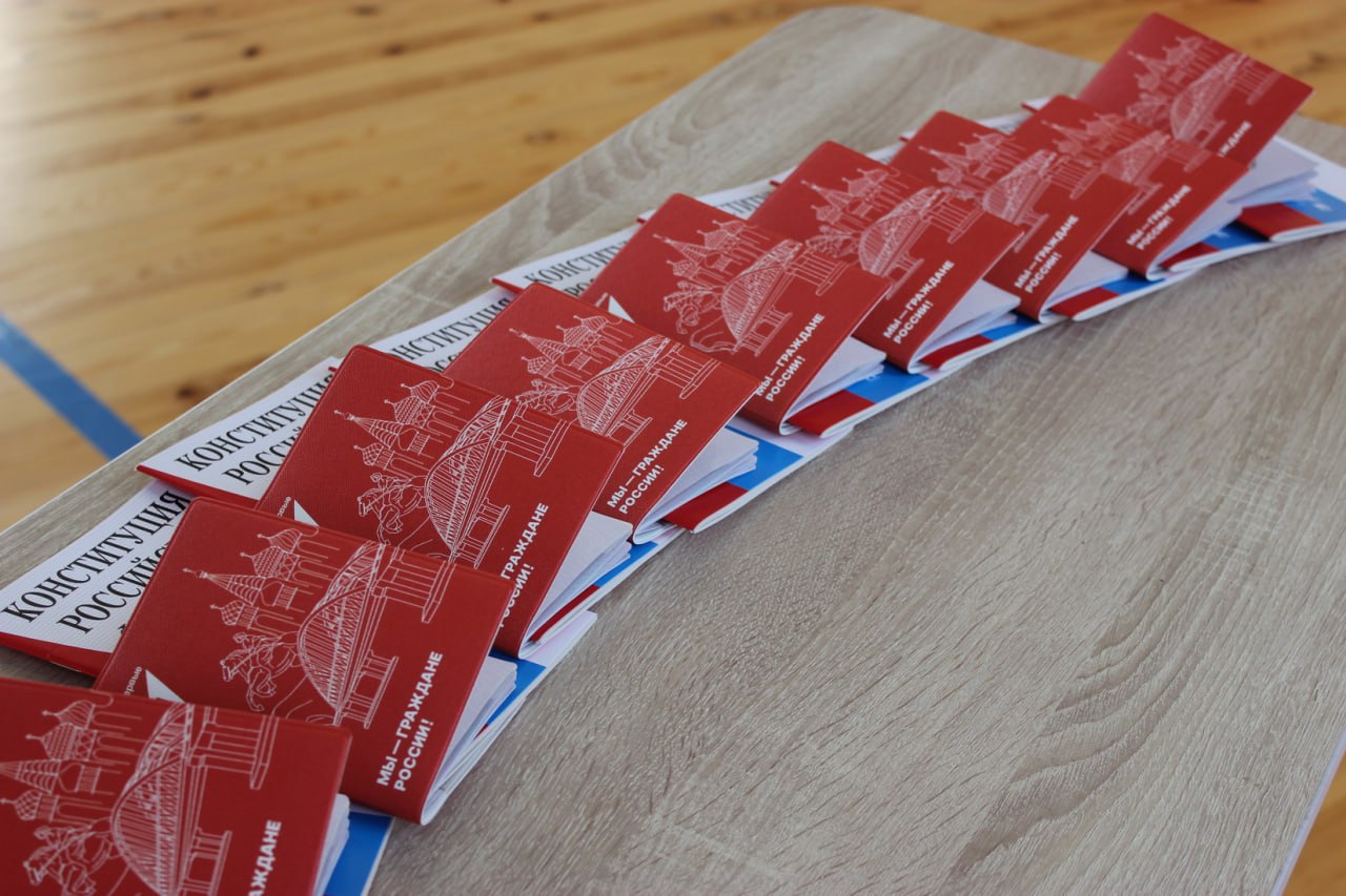 На память каждому участнику церемонии вручили экземпляр Конституции Российской Федерации и обложку на паспорт с символикой Движения Первых.