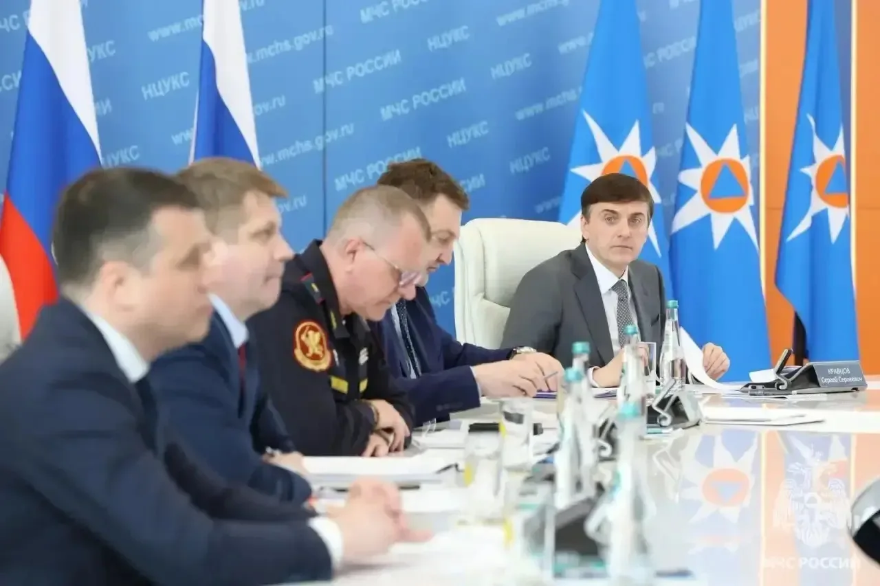 Селекторное совещание под руководством главы МЧС и министра просвещения состоялось с участием заместителей главы и руководителей подразделений центрального аппарата чрезвычайного ведомства, представителей Минпросвещения, МВД, Росгвардии, Рособрнадзора.