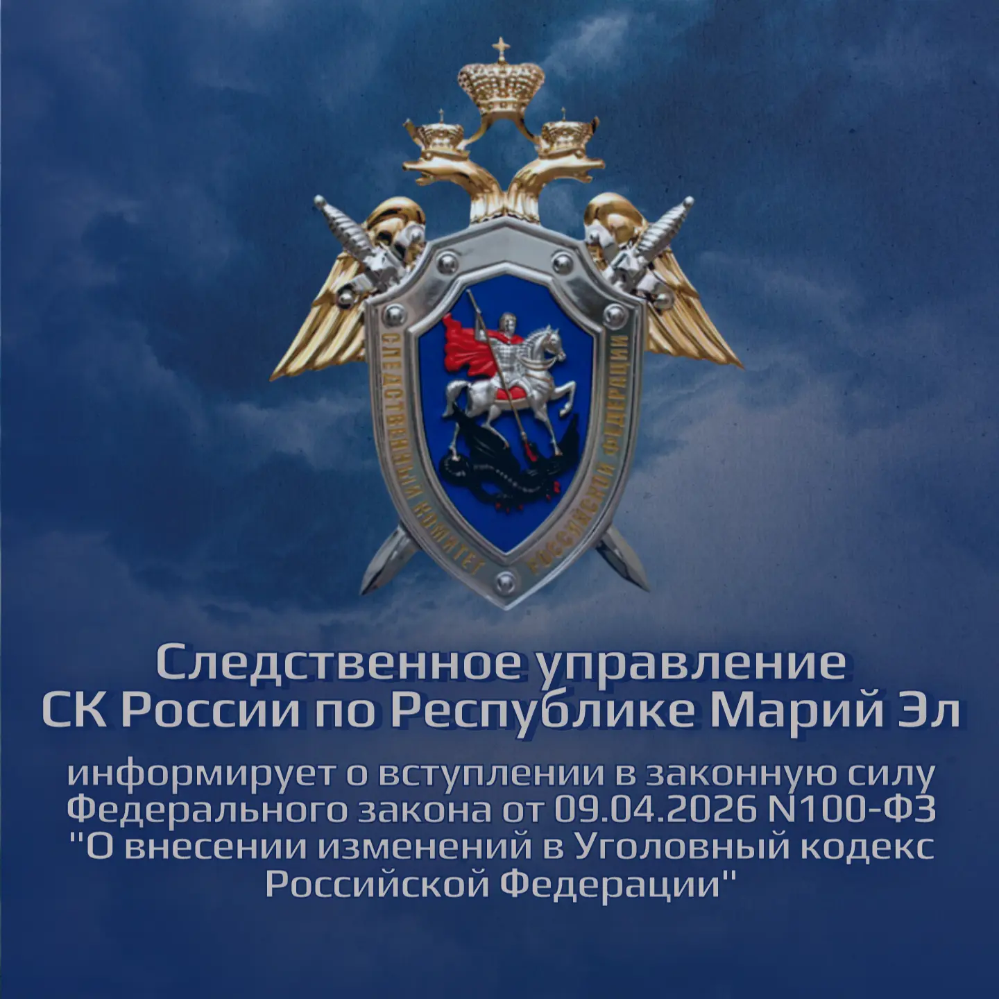 Следственное управление СК России по Республике Марий Эл информирует граждан о вступлении в законную силу Федерального закона от 09.04.2026 N 100-ФЗ «О внесении изменений в Уголовный кодекс Российской Федерации»