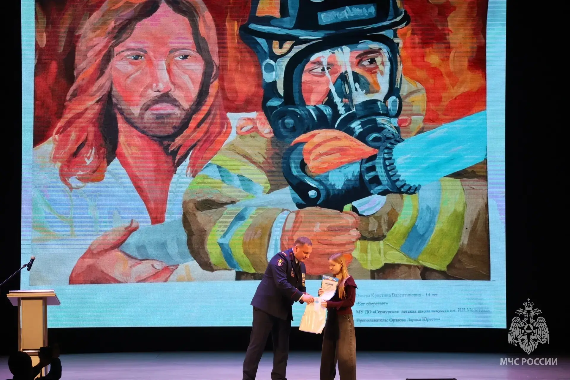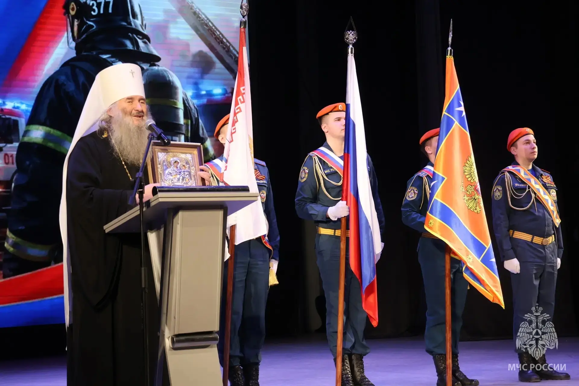 Перед началом торжественной части гости смогли посетить интерактивные павильоны на улице и в фойе, где были выставлены образцы техники, используемые специалистами спасательного ведомства.