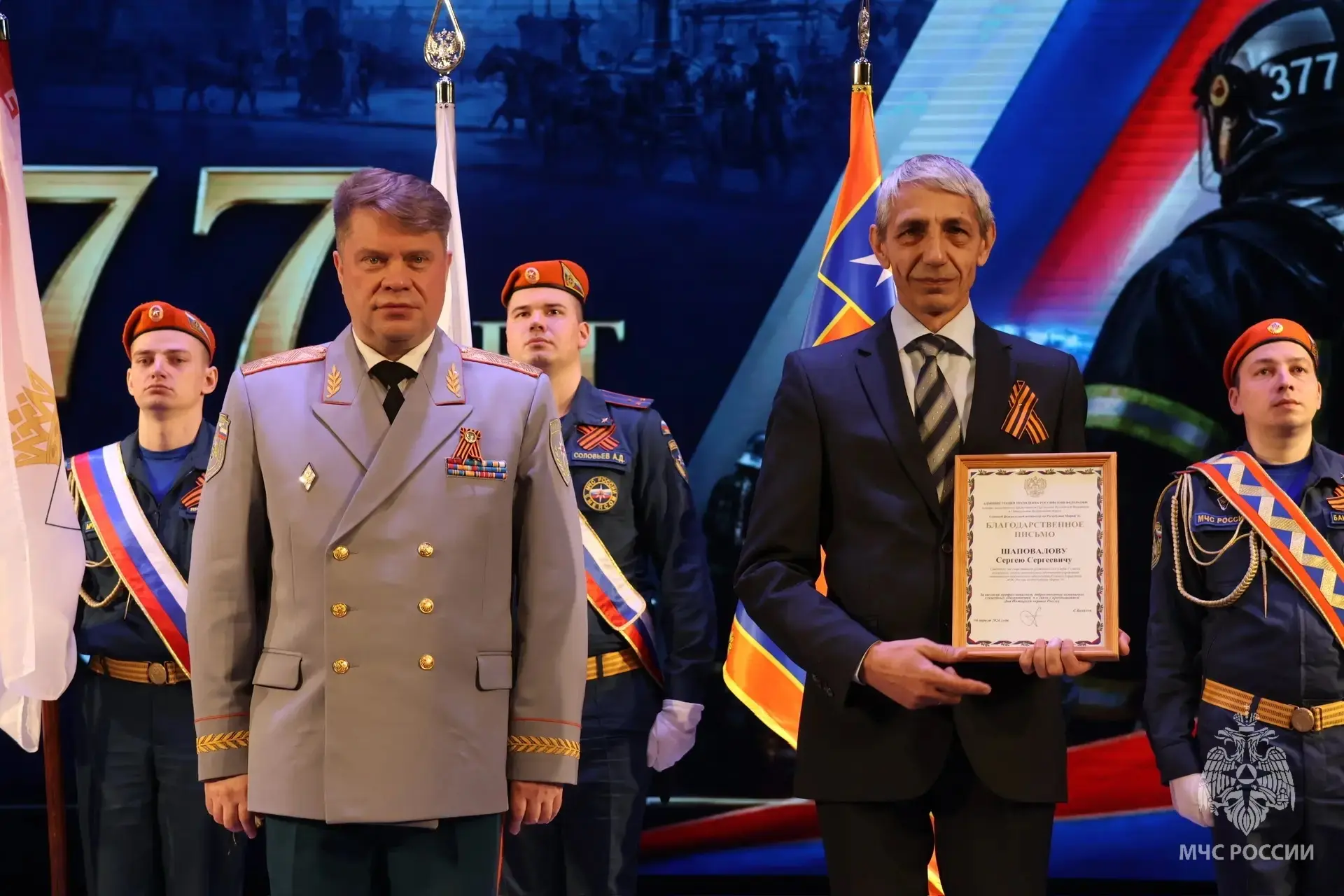 Со сцены звучали поздравительные речи, наиболее отличившимся из числа личного состава были вручены медали и почётные грамоты. Не забыли и про самых юных участников праздника - детям-победителям конкурса рисунков вручили заслуженные награды.