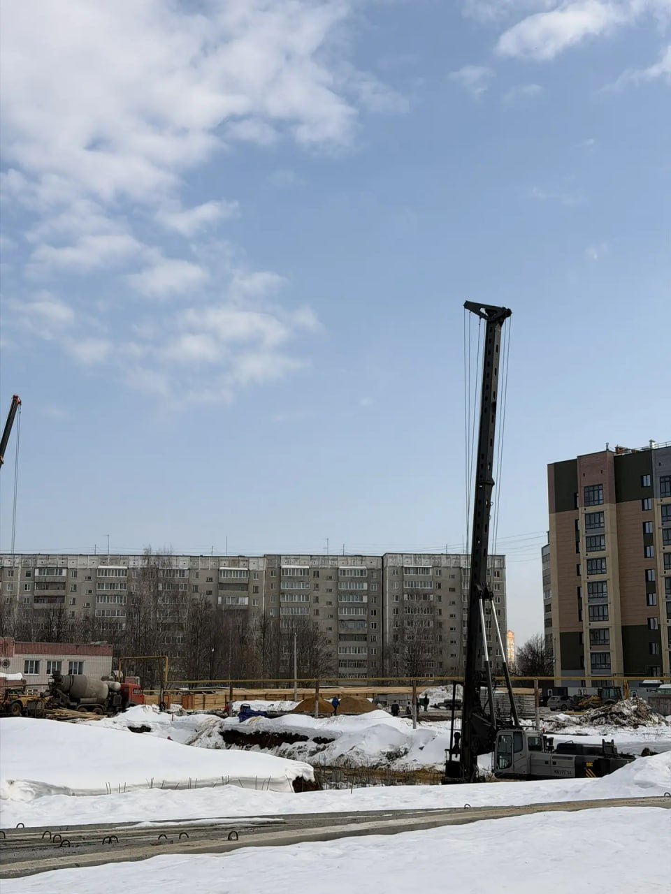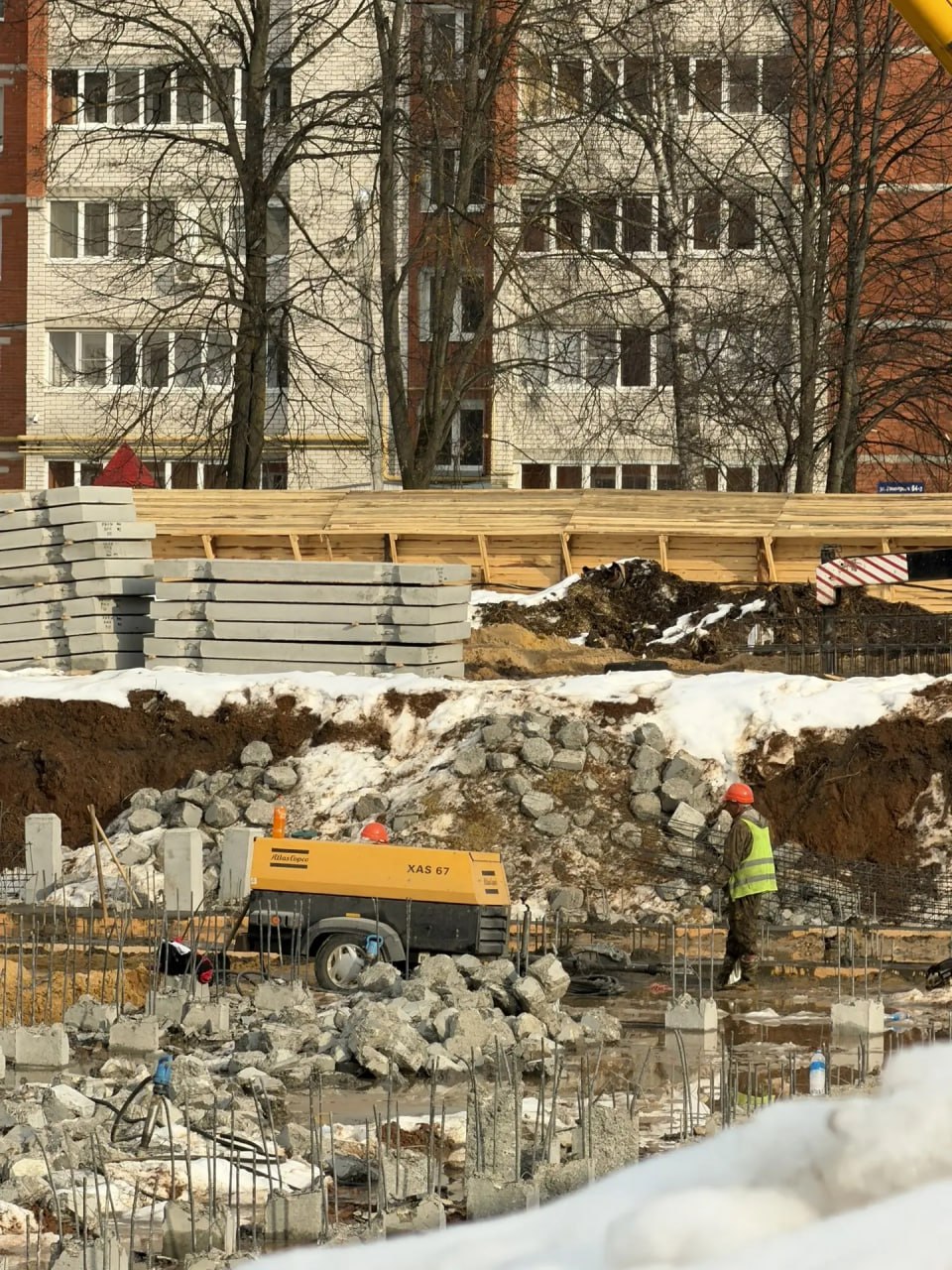 На месте пустыря закладывают фундамент будущего учебного заведения. Строители уже разработали котлован и приступили к забивке свай.