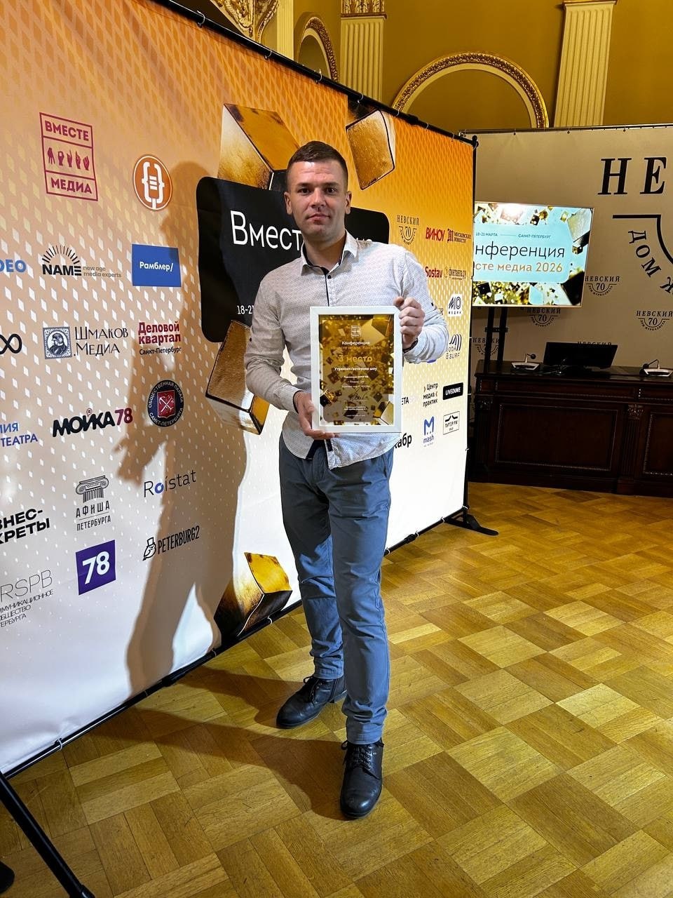 В Санкт-Петербурге завершилась конференция «Вместе Медиа-2026». Главным событием заключительного дня стало награждение победителей конкурса, где бронзовым призером признано утреннее шоу «2 МЭТРа» с Ириной Мирошиной и Ильей Беневоленским.