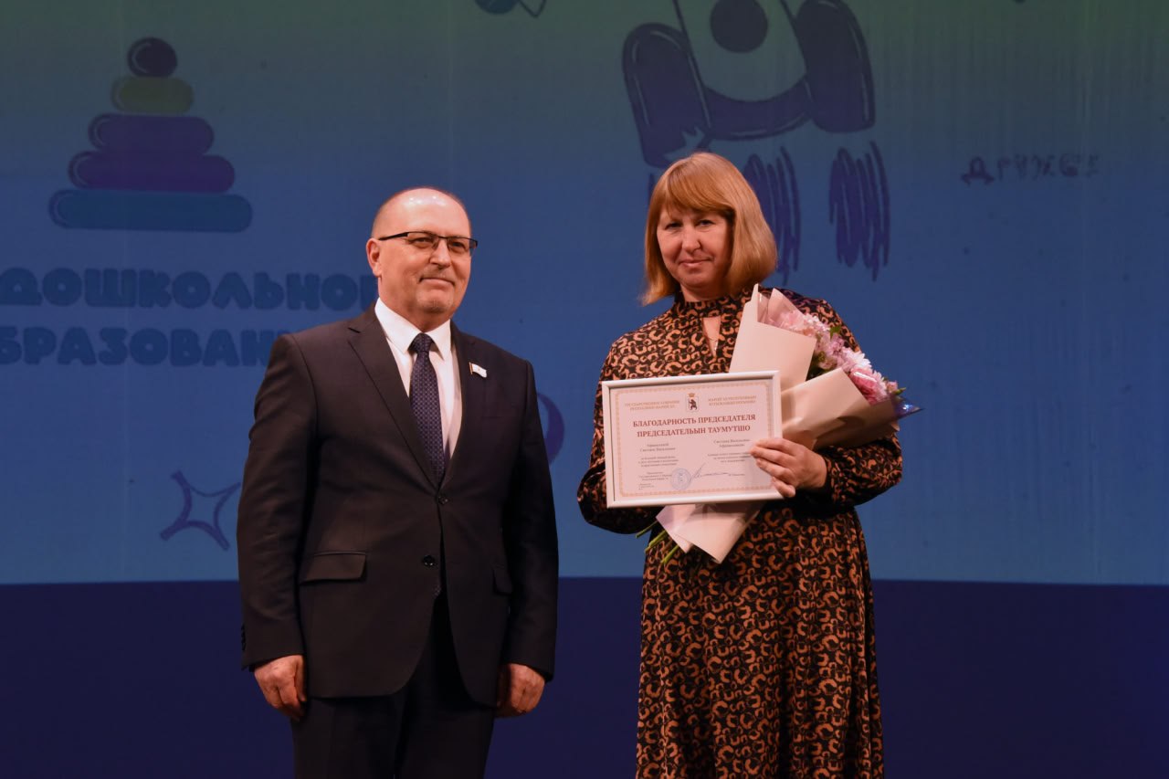 За большой личный вклад в дело обучения и воспитания подрастающего поколения Благодарностью Председателя Госсобрания были поощрены воспитатель Моркинского детского сада № 3 «Светлячок» Светлана Афанасьева и младший воспитатель детского сада № 1 «Сказка» поселка Советский Тамара Иванова.