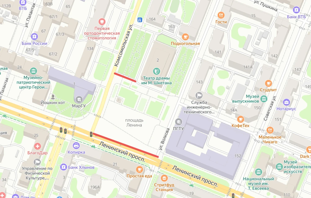 на площади Ленина от улицы Комсомольской до улицы Волкова;
