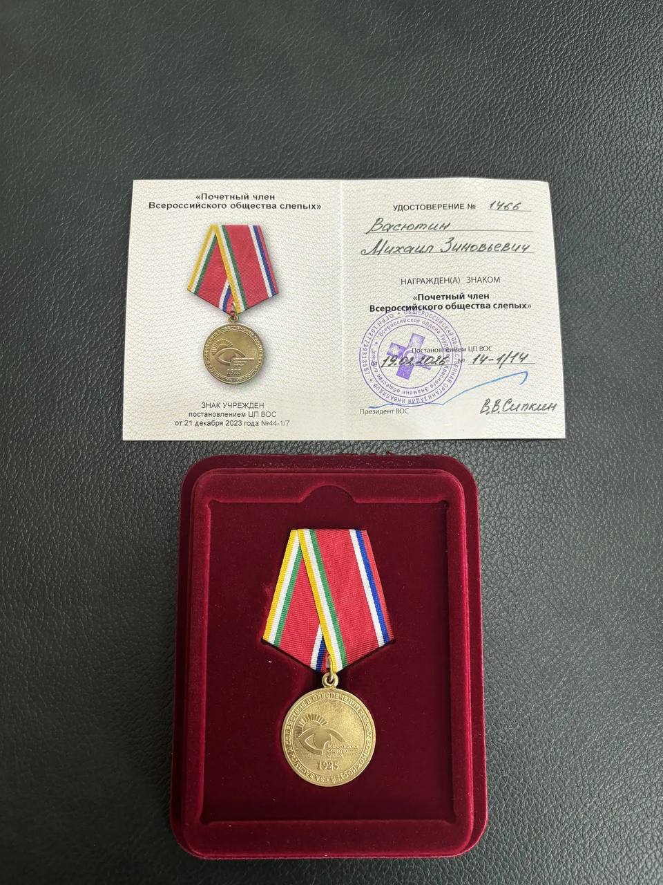Вклад Михаила Васютина в поддержку Всероссийского общества слепых отмечен почетным знаком