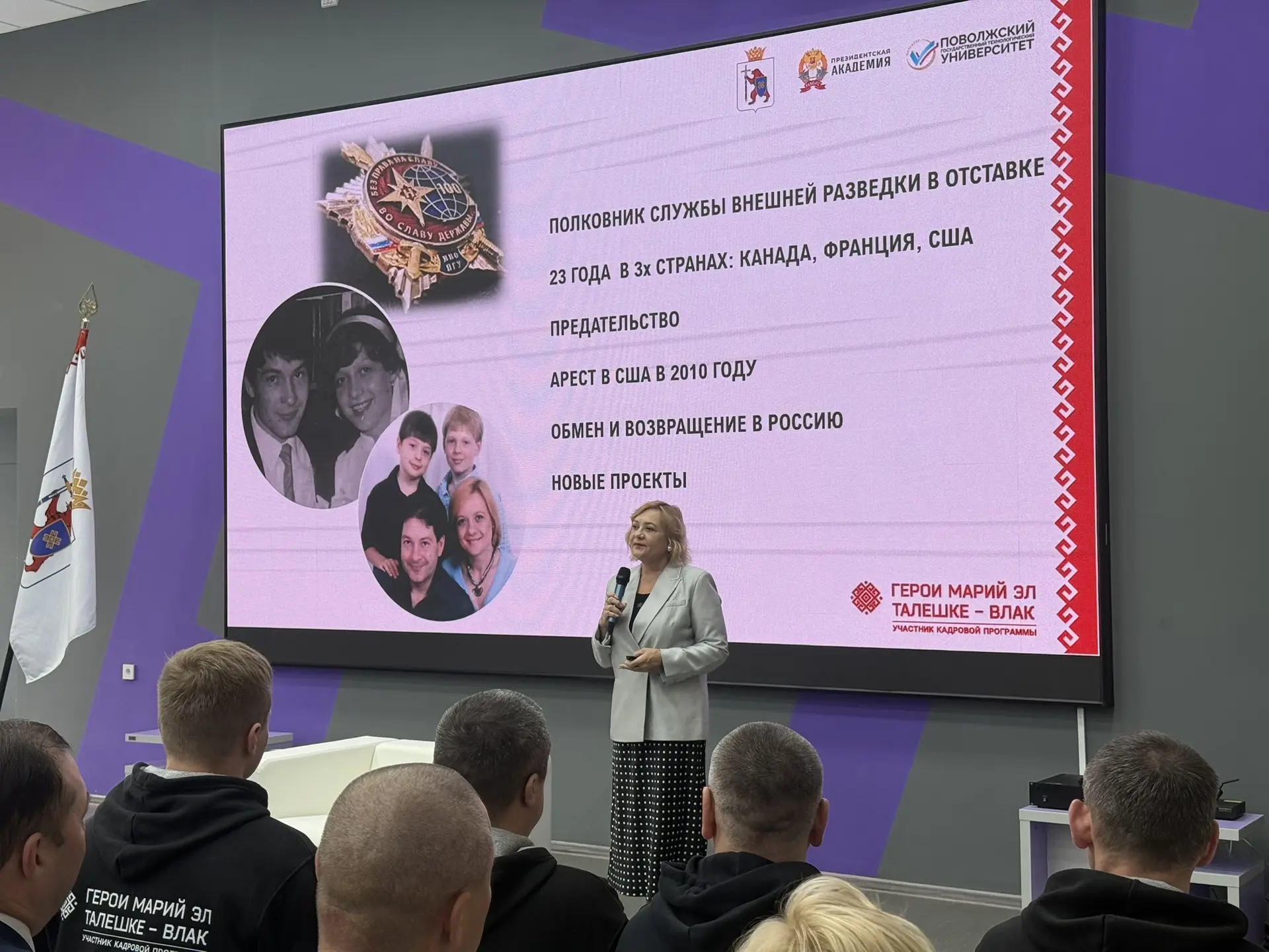 В рамках нашей региональной кадровой программы «Герои Марий Эл. Талешке-влак» для ветеранов и участников СВО состоялась уникальная встреча. Перед бойцами и жителями республики выступила Елена Станиславовна Вавилова — полковник службы внешней разведки в отставке, федеральный эксперт, писатель и лектор Российского общества «Знание».