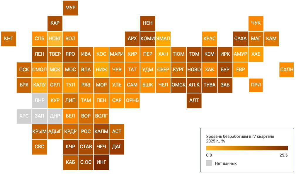 По данным аналитиков, в четвертом квартале 2025 года уровень безработицы в регионе составил 1,8%. По сравнению с 2024 годом он уменьшился на 0,2%.