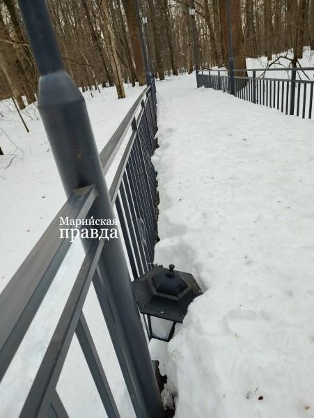 В Сосновой роще столицы Марий Эл на пешеходном мостике зафиксирован акт вандализма. Неизвестные разбили два фонаря.