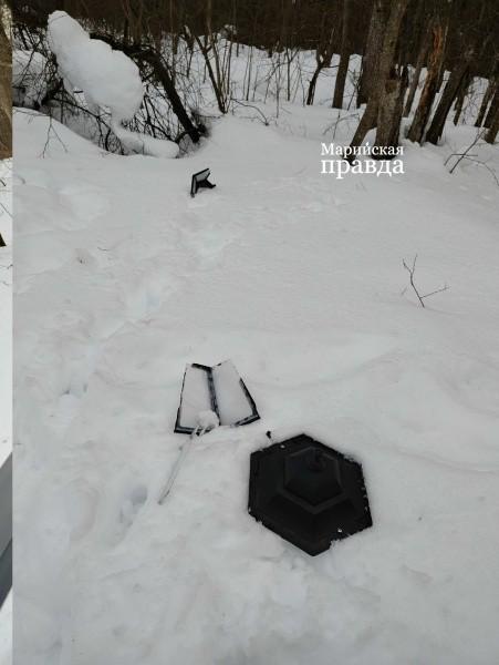 Один из них торчал в снежном сугробе прямо на мостике, второй разбитый на части, лежал рядом с мостом. Об этом сообщает Марийская Правда.