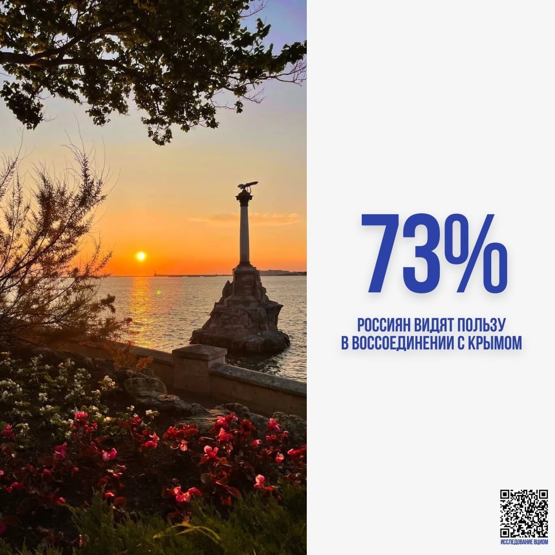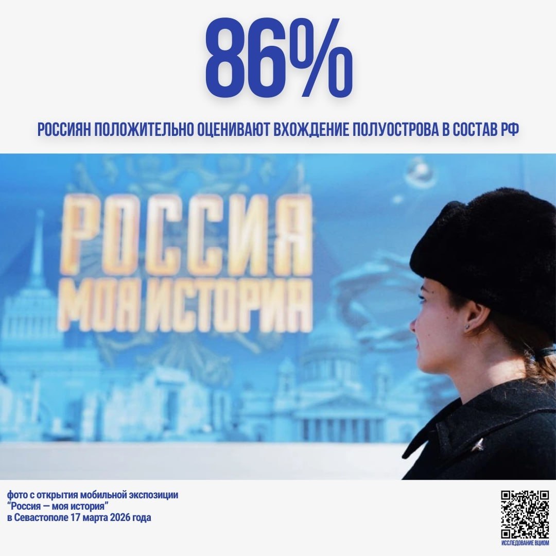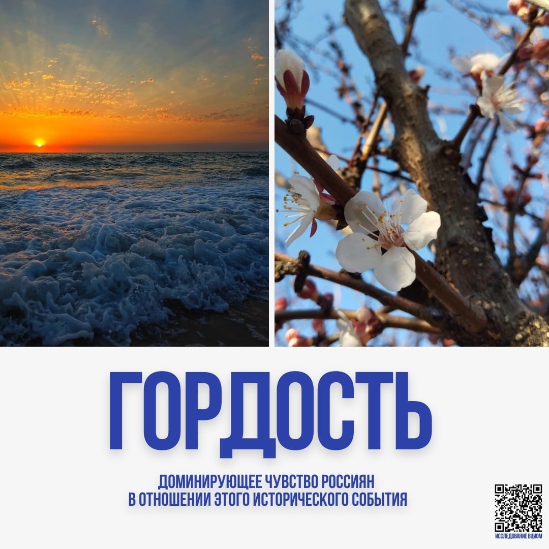 Главное чувство, которое несут жители России все эти годы — гордость. Об этом говорит исследование ВЦИОМ, некоторые цифры из отчета социологов — в карточках с красивыми крымскими фото из марта-2026.