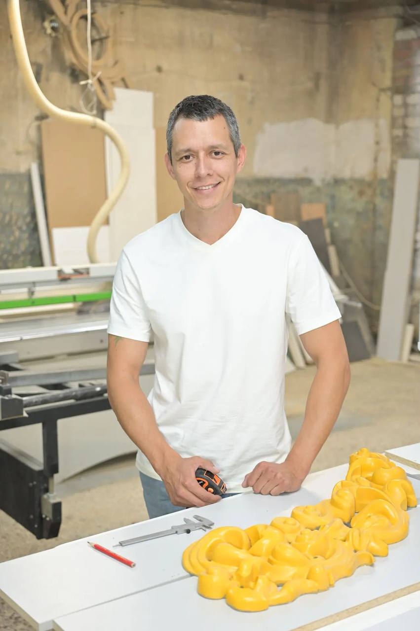На фото Роман Фролов из Козьмодемьянска - столяр-мебельщик, художник, реставратор. Заключил социальный контракт, чтобы расширить производство.