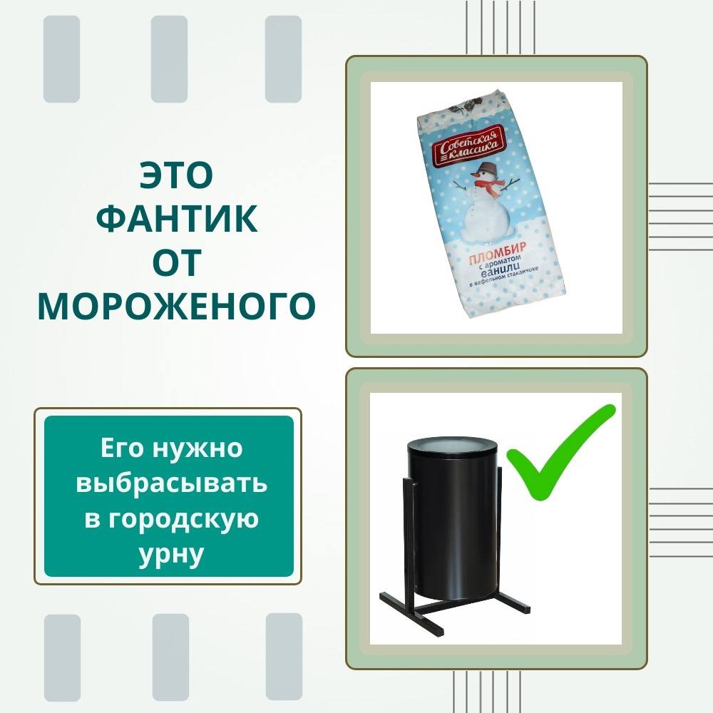 Все просто: фантик - в урну, пакет с бытовым мусором - в контейнер