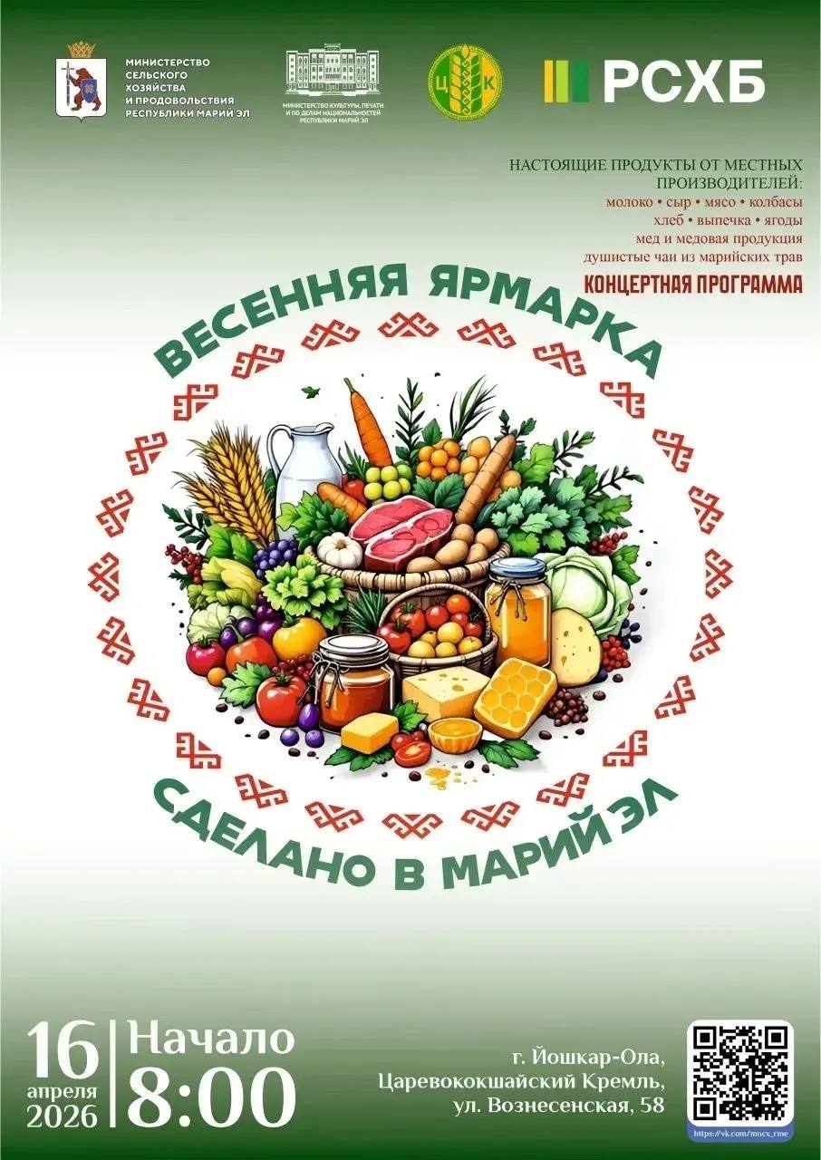 16 апреля на территории Царевококшайского Кремля развернется главная гастрономическая и ремесленная встреча весны — ярмарка «Сделано в Марий Эл». Гостей ждут с раннего утра: мероприятие начнется в 8:00 и обещает стать настоящим праздником вкуса, качества и народного мастерства.