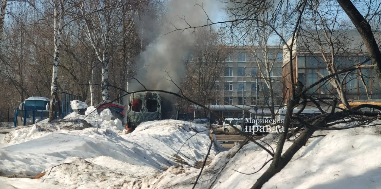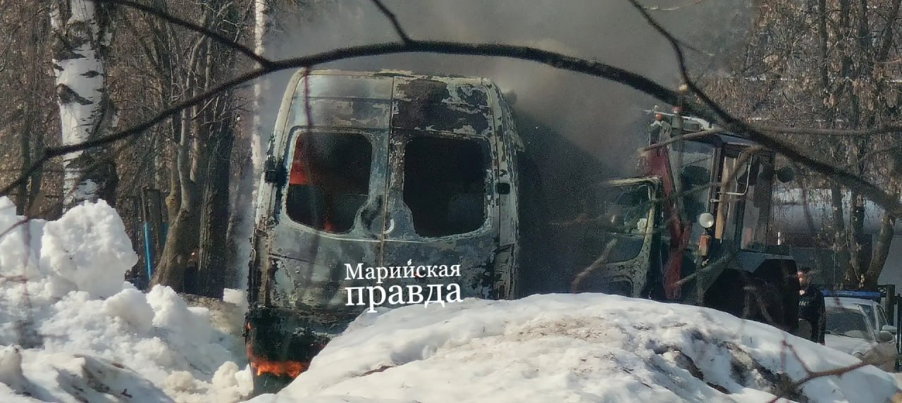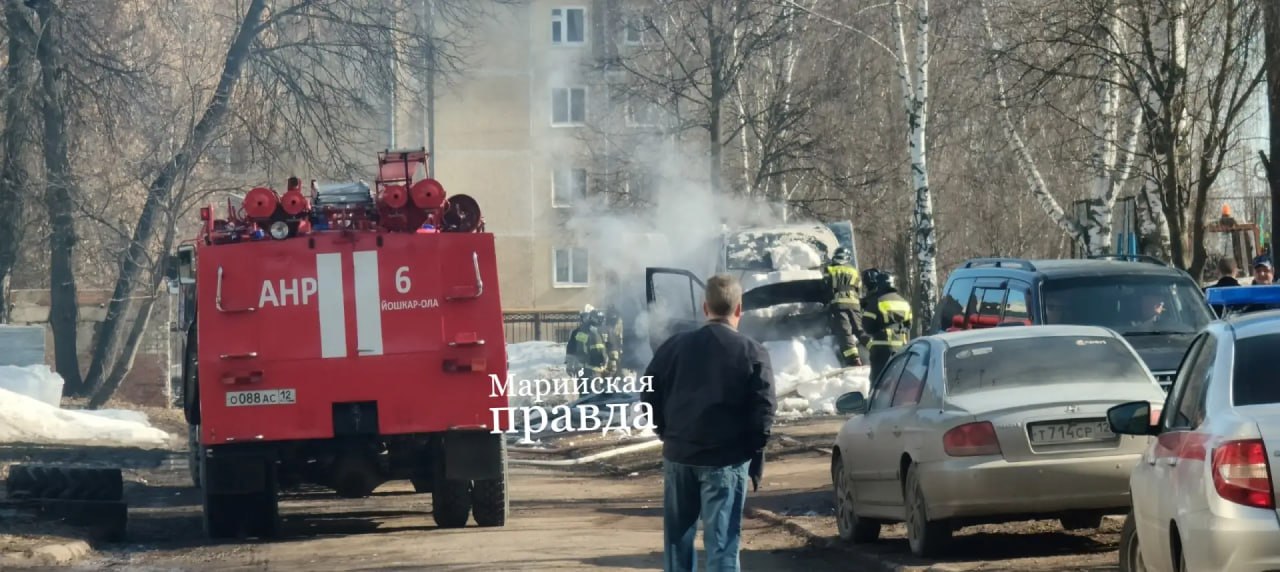 В Йошкар-Оле прямо сейчас пожарные тушат горящий микроавтобус