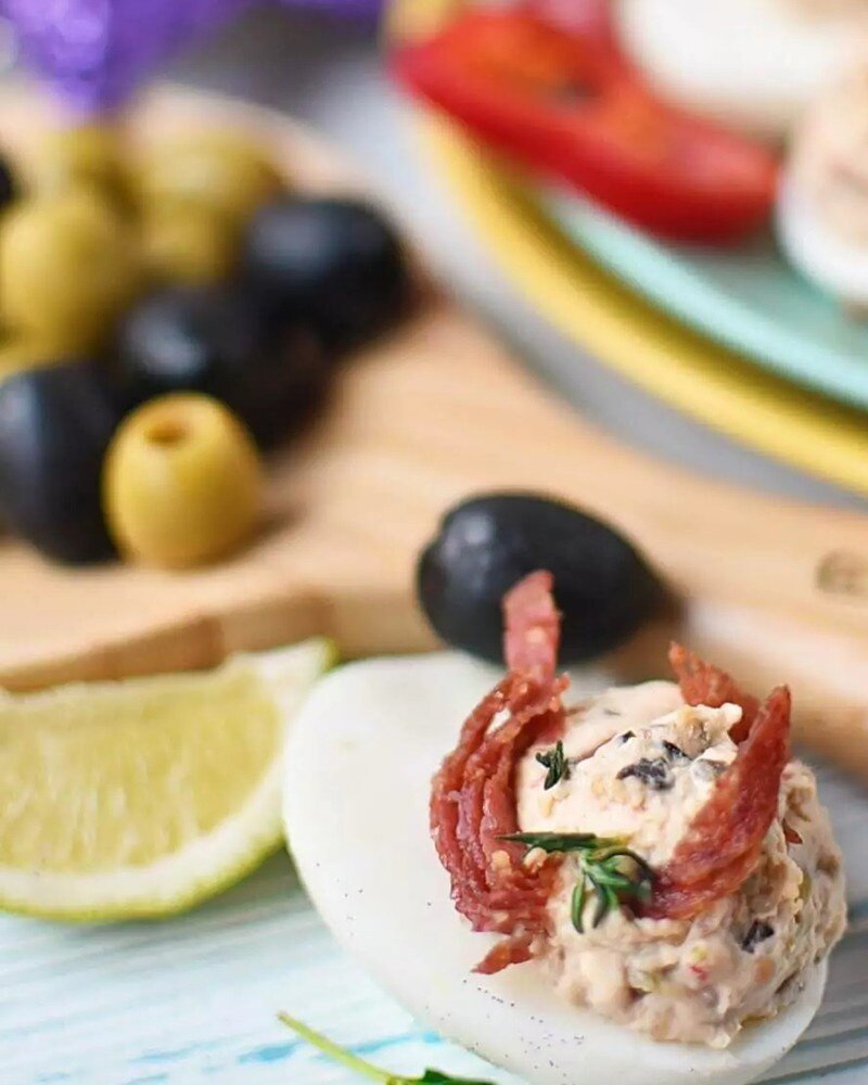 Неповторимые фаршированные яйца с салями и оливками