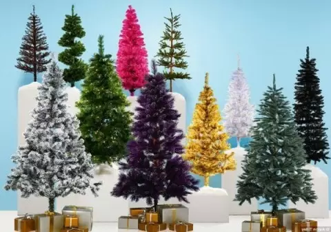 Современные елки представлены в разнообразных цветах: от традиционного изумрудно-зеленого до белого, серебристого и даже золотого. Некоторые модели уже украшены игрушками и гирляндами, что облегчает процесс подготовки к празднику.