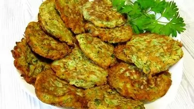 Чтобы сделать оладьи, растертые кабачки необходимо сначала отжать от лишней жидкости, чтобы они получились румяными и легкими. Затем в миске смешиваются яйца, натертый сыр, мелко нарезанная зелень и лук, а также мука с разрыхлителем. Приправить смесь солью и перцем – и тесто готово к жарке.