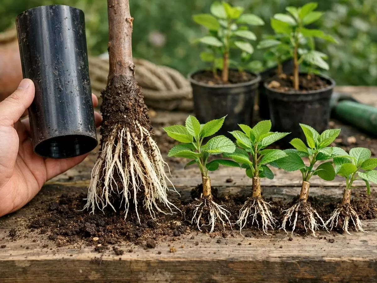 Суть технологии заключается в образовании корней вдоль всей длины подготовленной ветки, а не в одной единственной точке. Через несколько недель у садоводов появляется развитая корневая система, которую можно разделить на множество самостоятельных саженцев. Такой способ не требует теплицы и сложного оборудования — необходимо лишь немного усердия и понимания процесса укоренения.