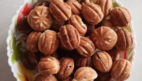 Когда орешки будут готовы, аккуратно наполните их сгущенкой. По желанию, в качестве дополнения можно использовать дробленые лесные орехи или заменить сгущенку на джем. Эти простые и аппетитные сладости станут отличным лакомством для праздника или просто повседневного чаепития.