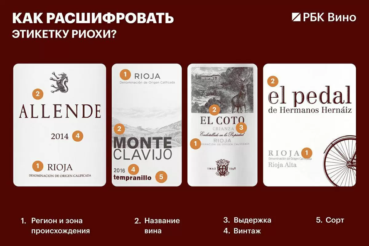 В Риохе работают десятки производителей, от крупных кооперативов до частных проектов. Название может говорить о производителе или о характере вина, отражая происхождение винограда или необычное сочетание сортов. Иногда на лицевой этикетке видна только часть названия, а полная информация — на контрэтикетке. В контексте выбора полезно ориентироваться по систематике региона и по оценкам критиков.
