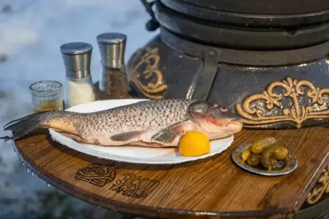 В тандыре карп жарится при температуре 250°C в течение 20-30 минут. После завершения процесса он становится хрустящим снаружи и сочным внутри. Примечательно, что настоящая иракская подача включает в себя оформление блюда лимоном, солеными огурцами и свежей мятой, что делает его ещё более аппетитным.