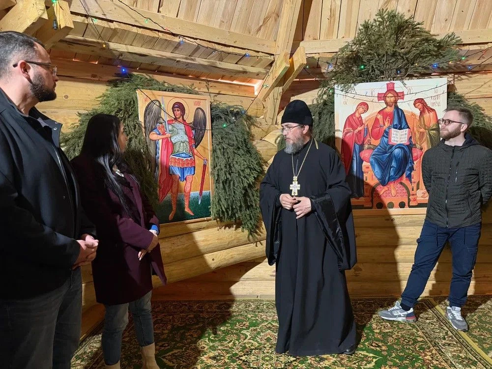 Первой остановкой стала «Богатырская застава». В селе Елембаево Новоторъяльского района гости побывали на Шукшанской богатырской заставе – уникальном культурном, образовательно-воспитательном и туристическом центре, созданном при храме святого преподобномученика Андрея Критского.