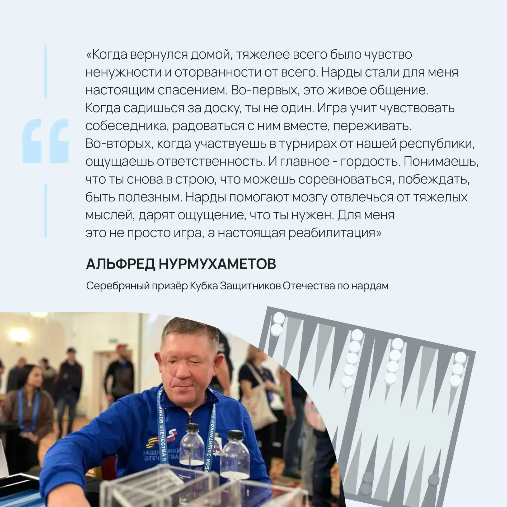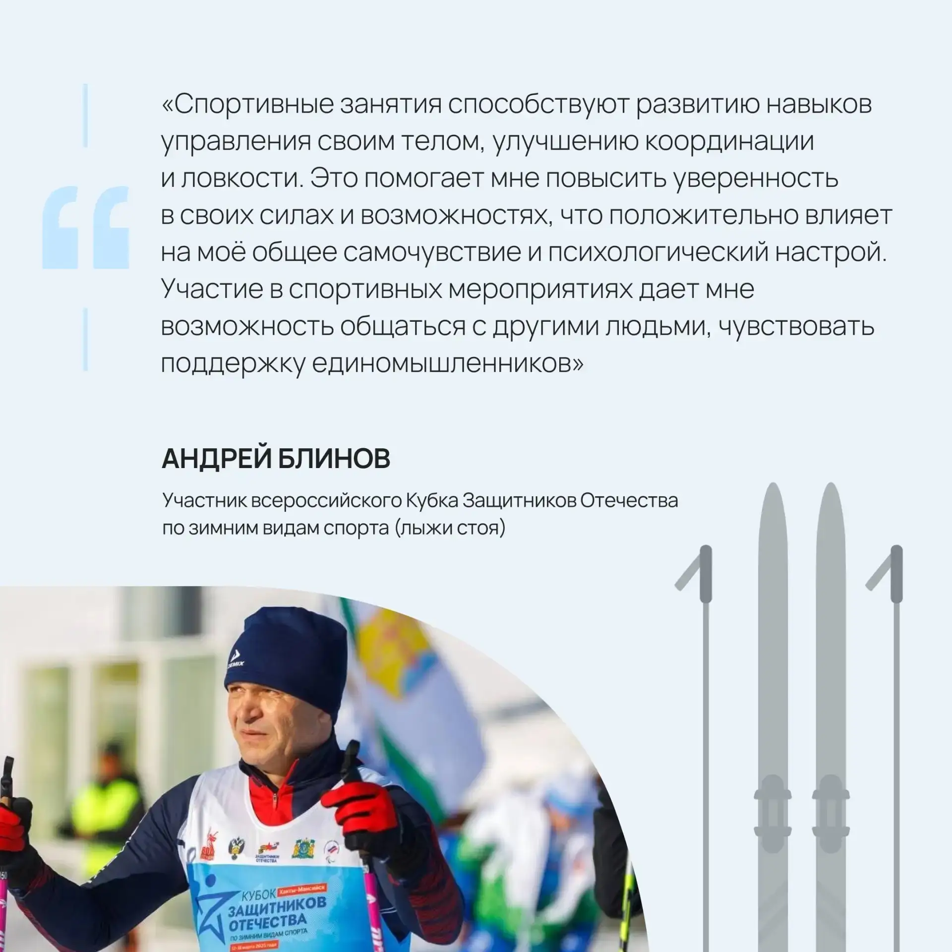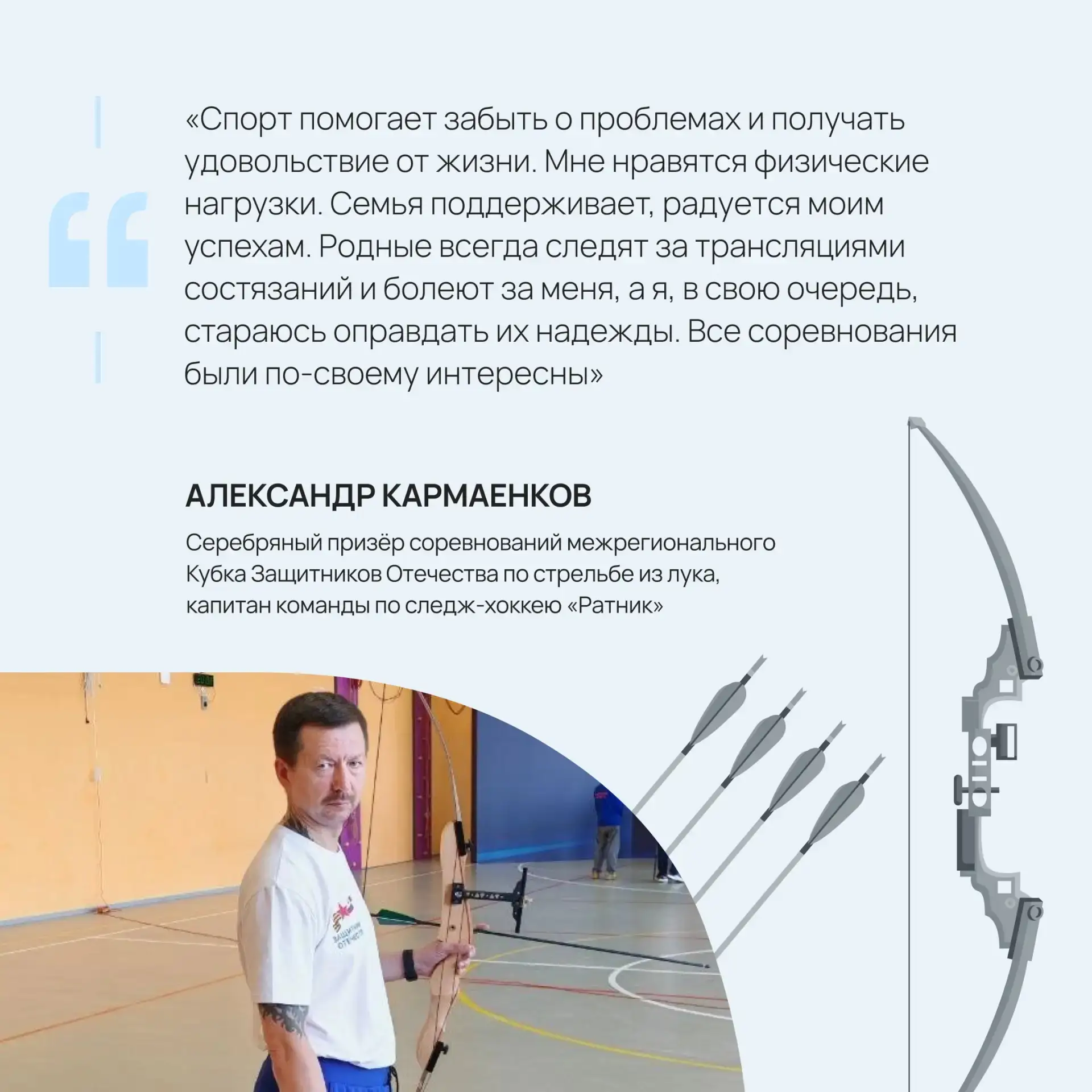 Своими мыслями о влиянии спорта на их жизнь поделились участники «Кубка Защитников Отечества» из Марий Эл. Подробнее об этом — в карточках