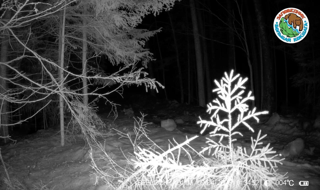 В заповеднике «Большая Кокшага» фотоловушка зафиксировала ночную прогулку енотовидных собак, которые вышли на поиски пропитания.