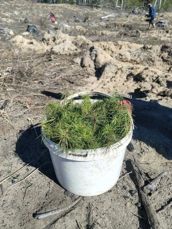 На прошлой неделе некоторые саженцы сосен высадили на территории Кокшайского лесничества.
