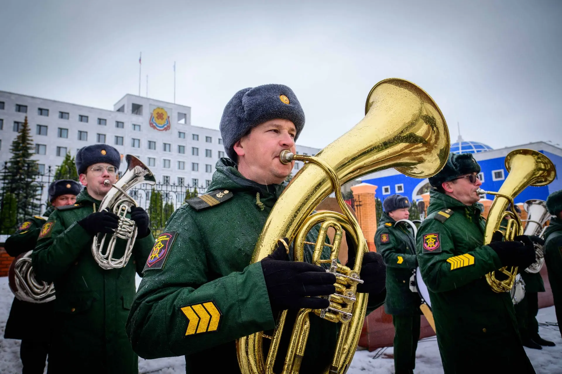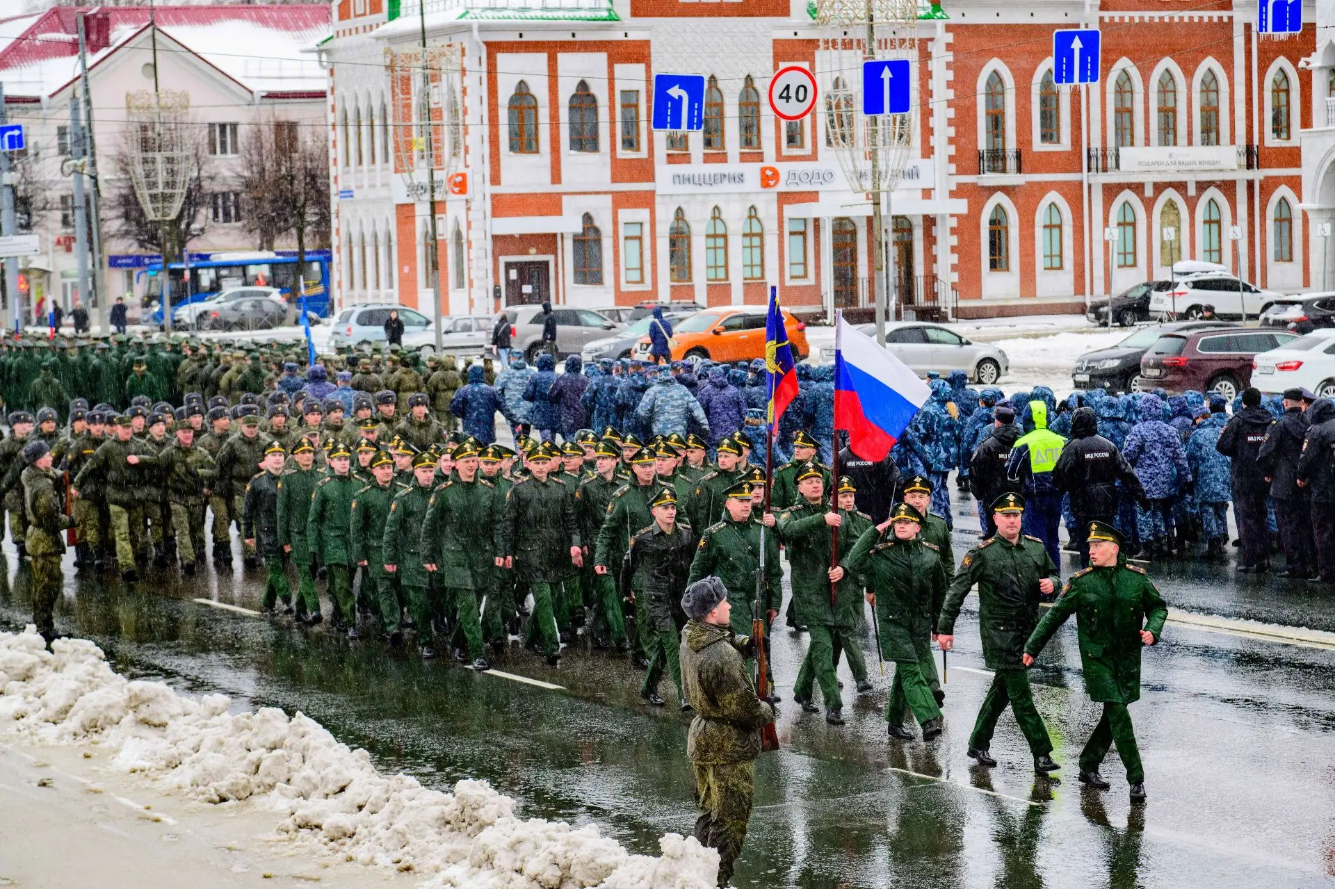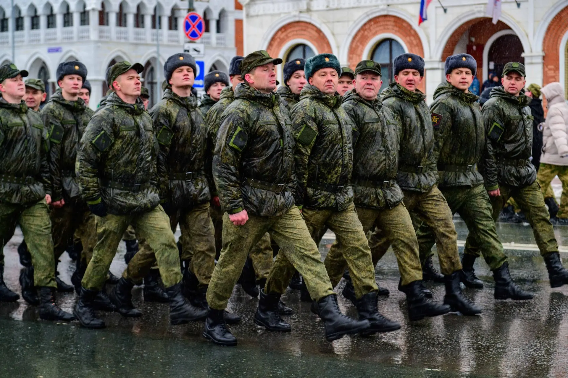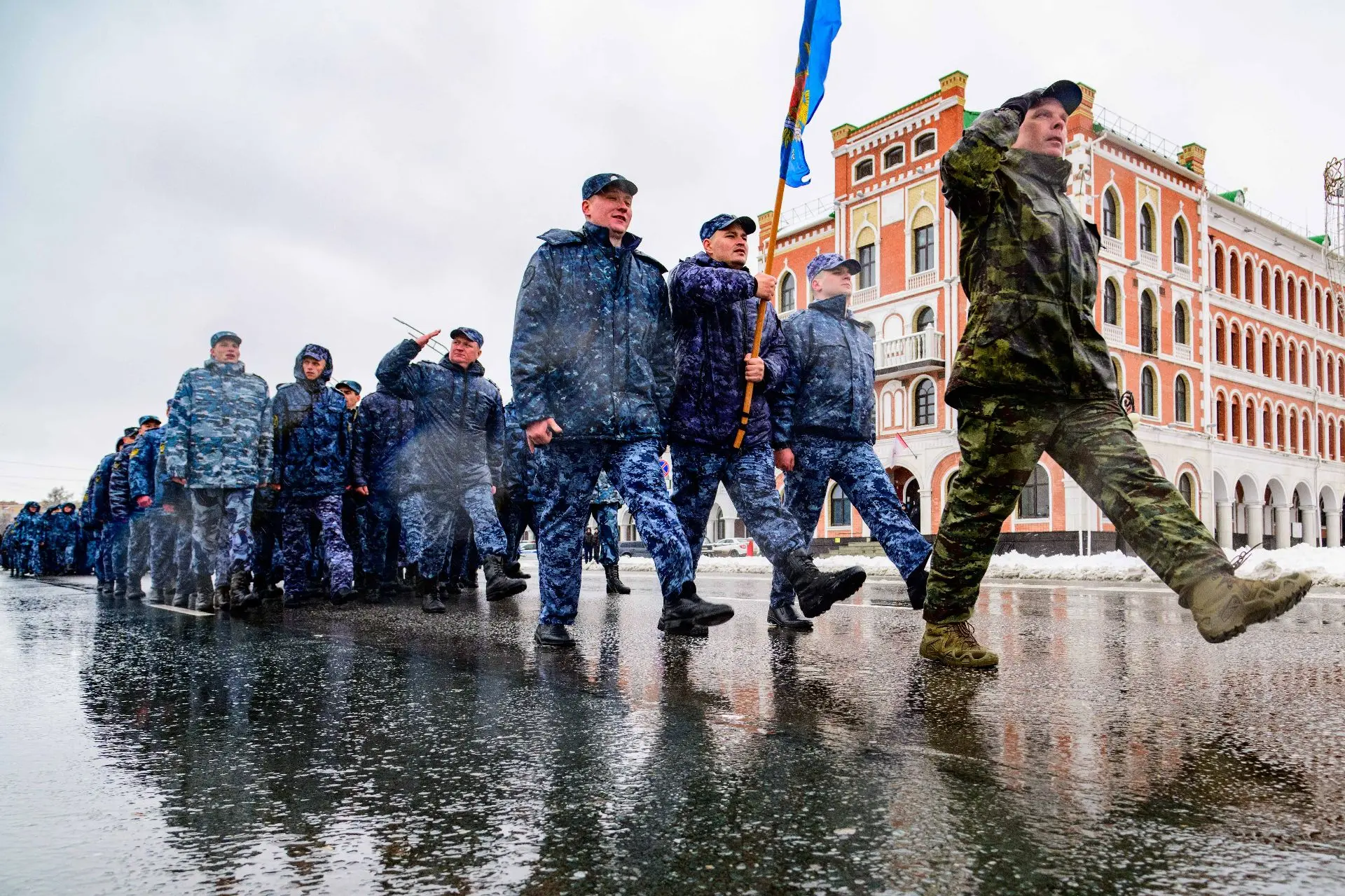Сегодня в Йошкар-Оле прошла первая репетиция парада Победы. Пешие расчёты отработали слаженность и чёткость шага.