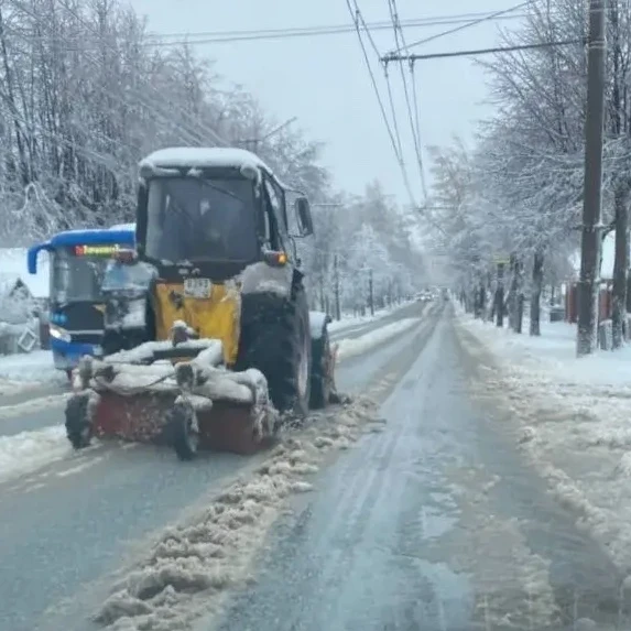 На борьбу с последствиями снегопада и ледяного дождя в столице республики вышли 44 единицы коммунальной спецтехники. Тракторы с щетками, погрузчики и грейдер убирают снег на дорогах города, расчищают межквартальные проезды.
