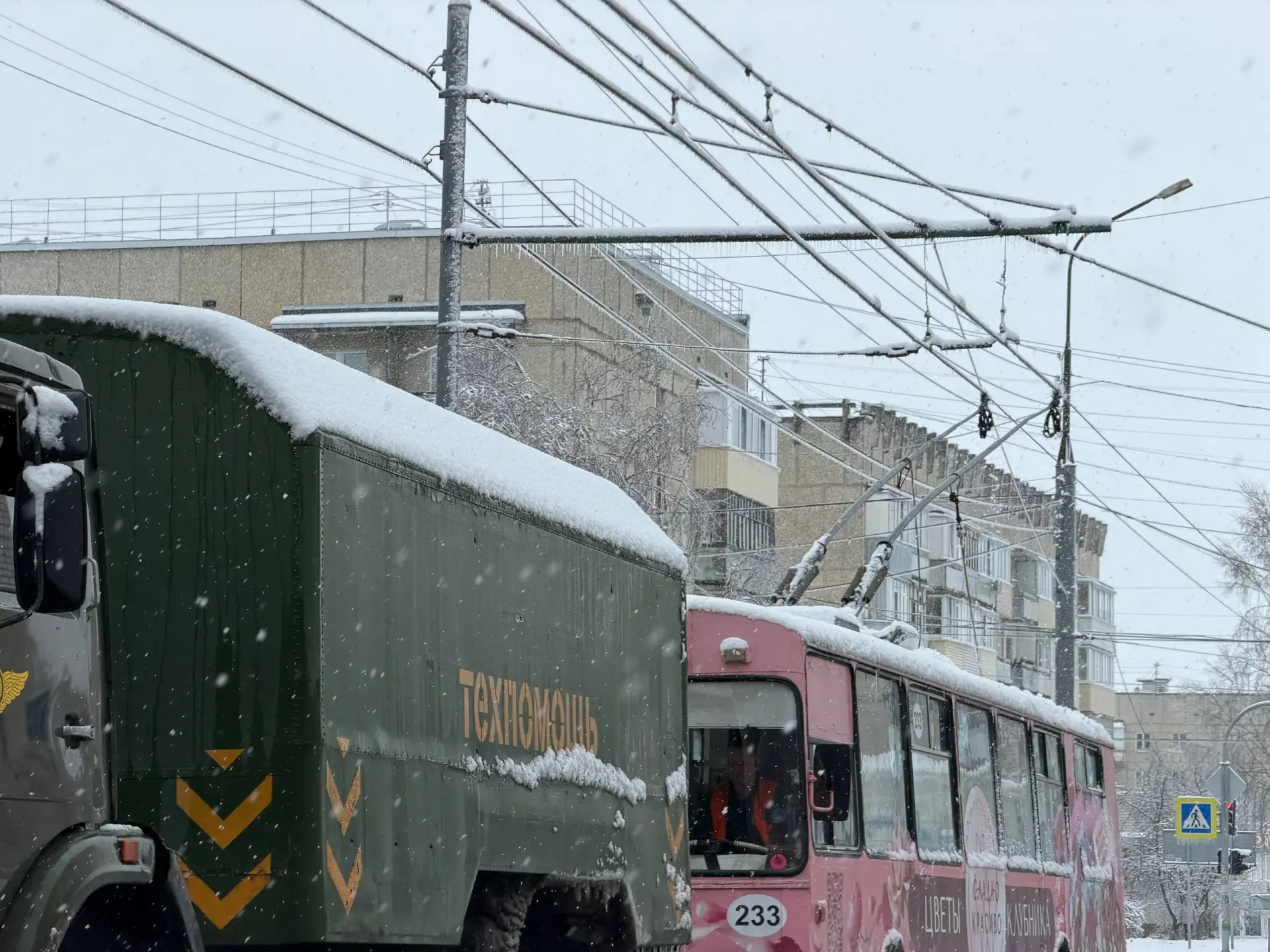 Специальный троллейбус проводит очистку контактной сети ото льда. Движение на маршрутах будет восстанавливаться по мере его прохождения. МЭТР. Новости Марий Эл ВКонтакте | MAX |// Телеканал МЭТР
