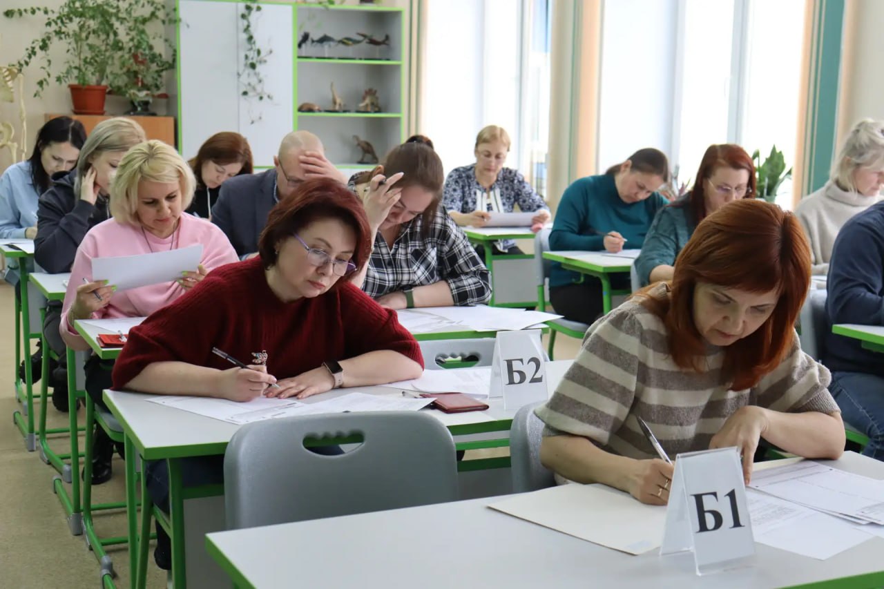 Взрослым участникам предложили пройти всю процедуру государственного экзамена от прохода в экзаменационный пункт до получения результатов. В этот раз мамы и папы писали сокращенный вариант экзамена по русскому языку.