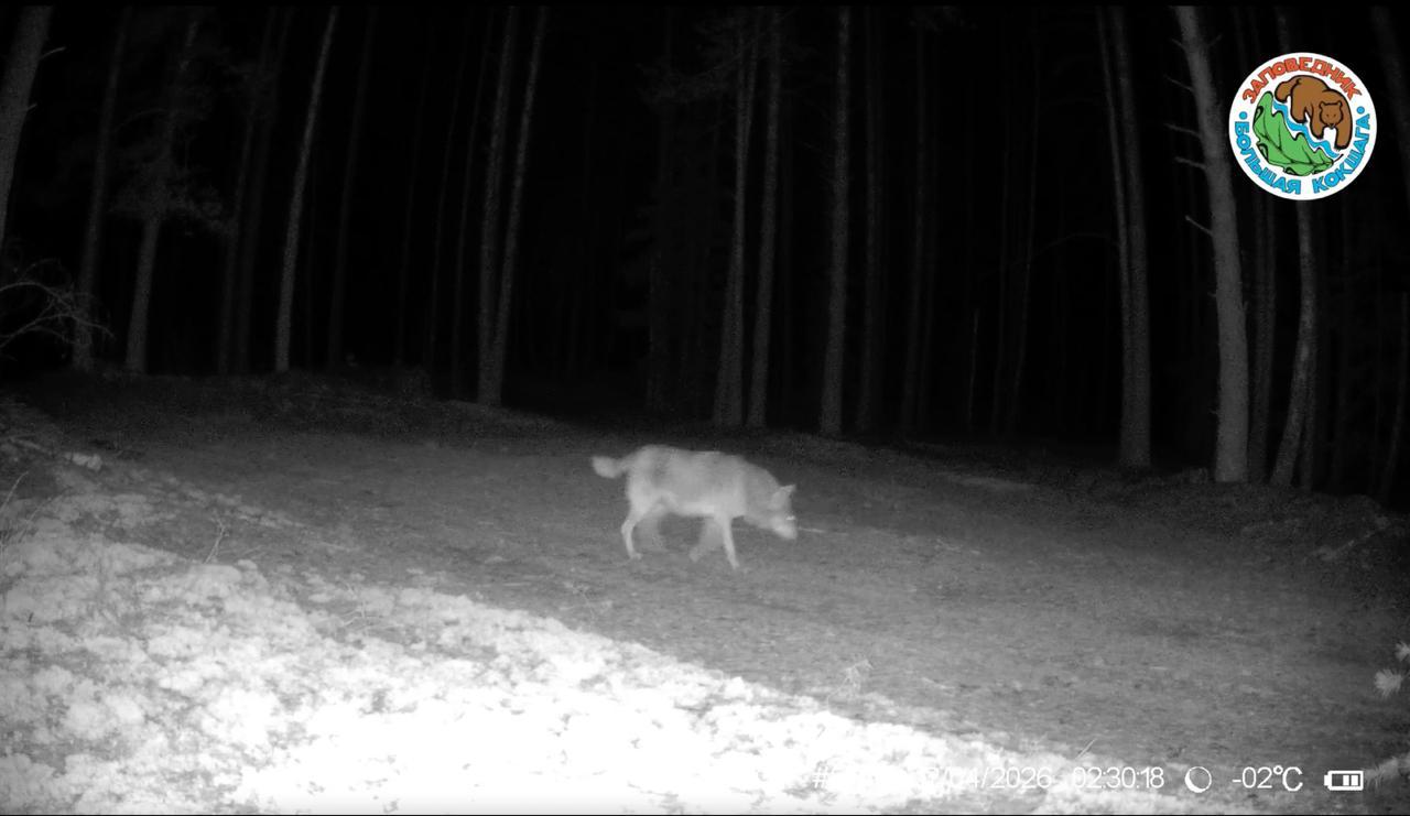 В заповеднике «Большая Кокшага» в объектив фотоловушки попала прогулка ночного странника — волка.