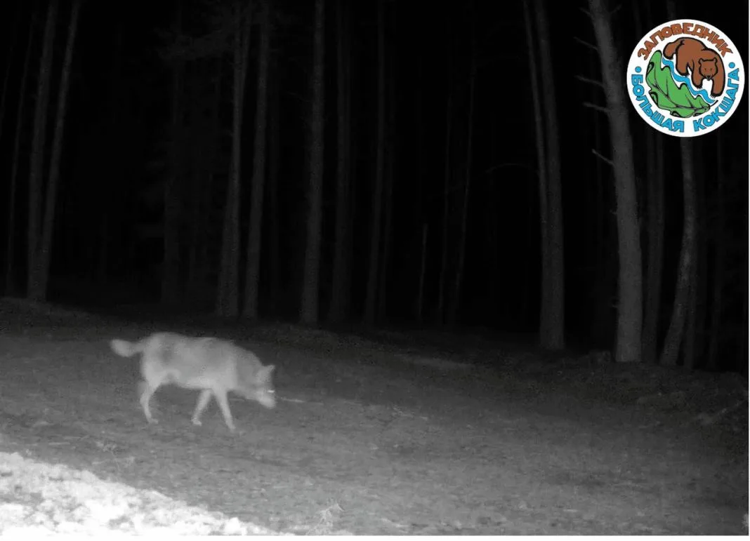Одна из камер, установленных на территории заповедника «Большая Кокшага» инспектором Николаем Субботиным, ночью зафиксировала рейд одинокого крупного волка.