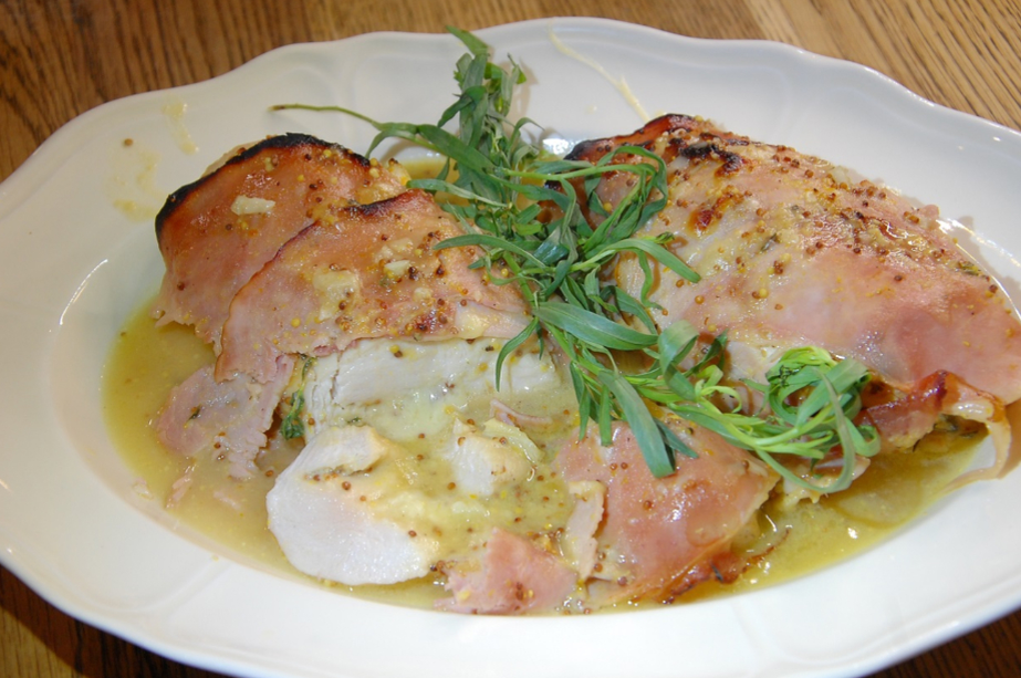 Шаг 7: Подавайте с соусом, оставшимся в форме, и украсьте тархуном.