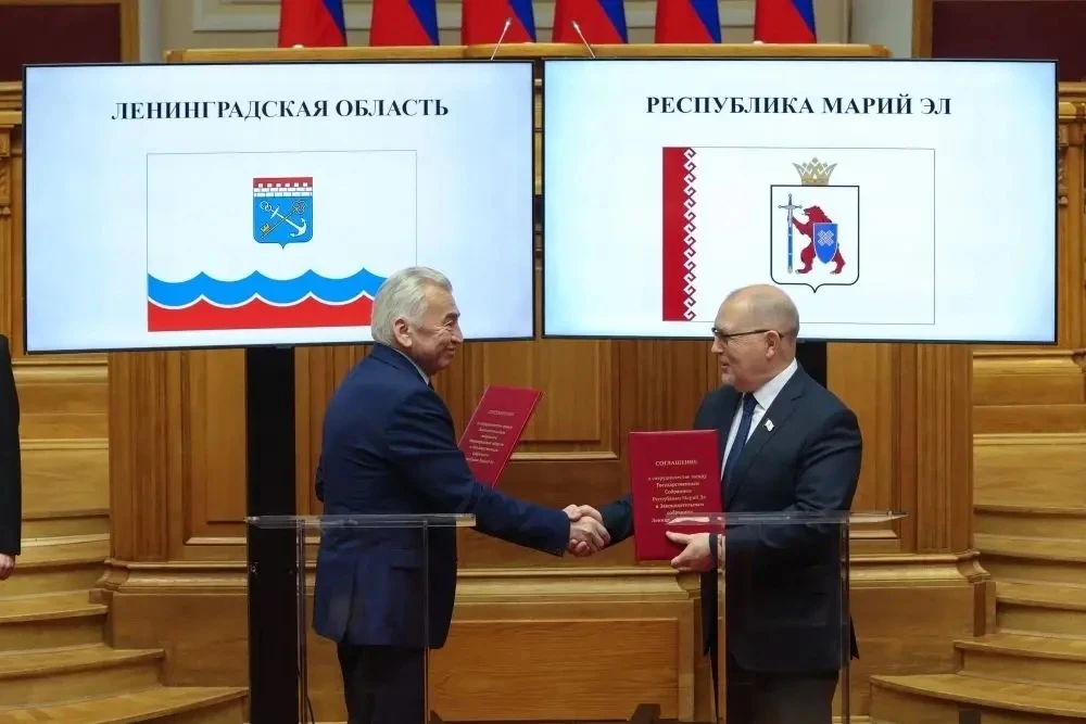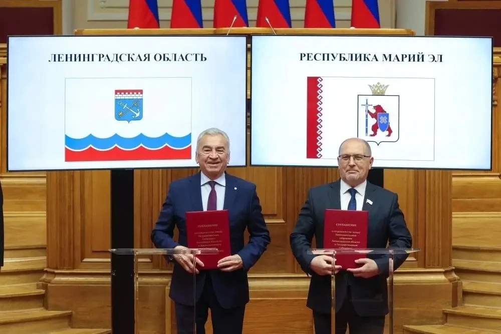 В Санкт-Петербурге в рамках мероприятий Совета законодателей Российской Федерации Председатель Госсобрания Республики Марий Эл Михаил Васютин и Председатель Заксобрания Ленинградской области Сергей Бебенин подписали Соглашение о сотрудничестве между двумя парламентами.