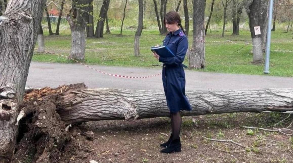 Происшествие произошло сегодня в Самаре. Из-за ураганного ветра дерево рухнуло на тротуар, где в это время проходили два подростка.