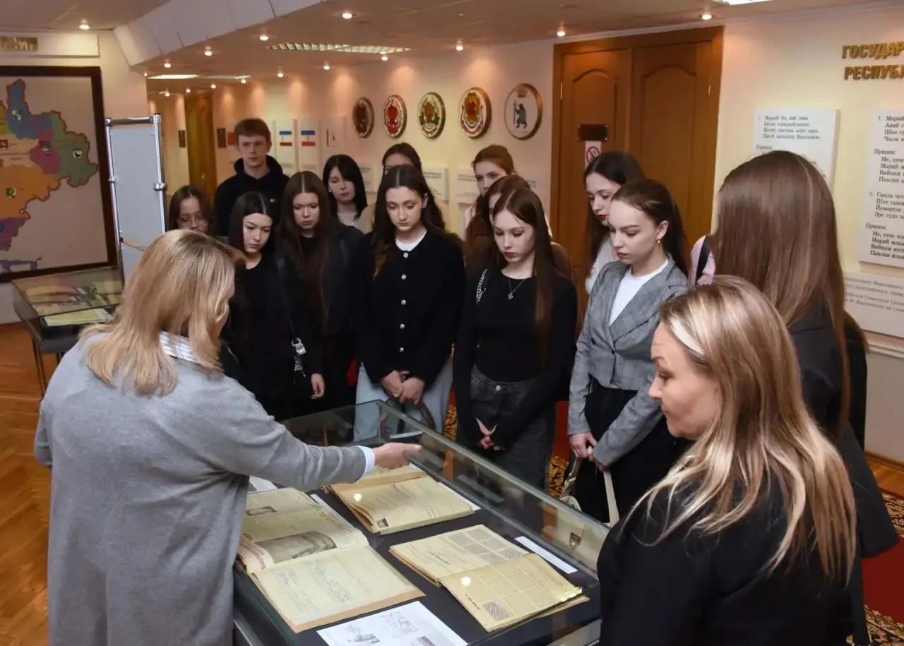 В ходе экскурсий участники ознакомились с уникальной выставкой документов Государственного архива республики, осмотрели портретную галерею руководителей Верховного Совета, а также увидели уникальный артефакт – карту «Марий Эл – цветок России», выполненную в технике ручной марийской национальной вышивки.