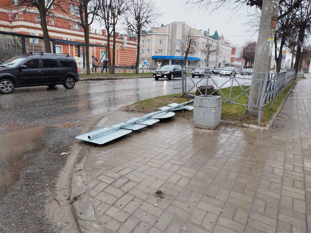 Ударов стихии не выдерживают конструкции. Сегодня утром у дома № 33 по бульвару Чавайна упал дорожный знак.