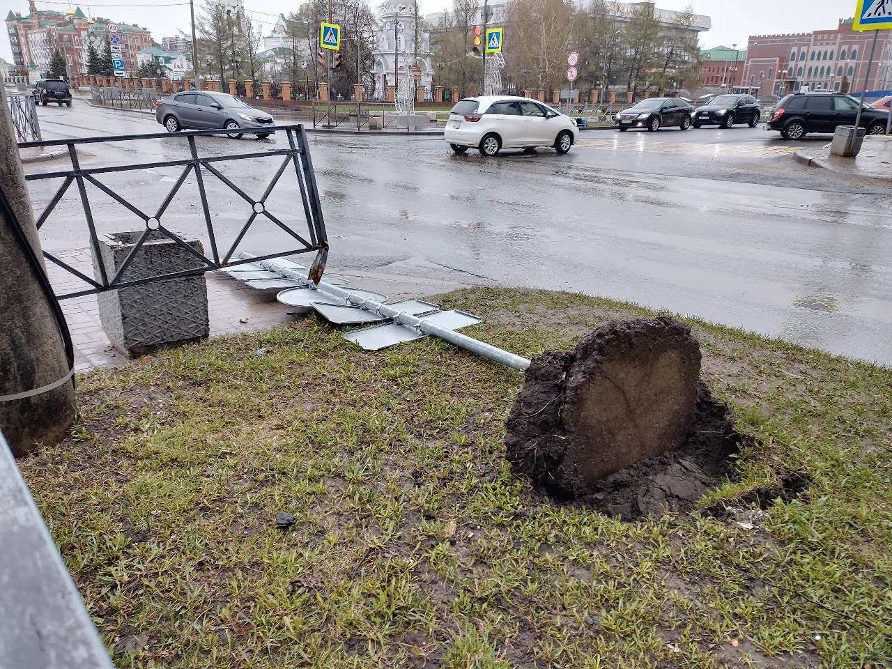 В Йошкар-Оле дорожный знак упал под ноги пешехода