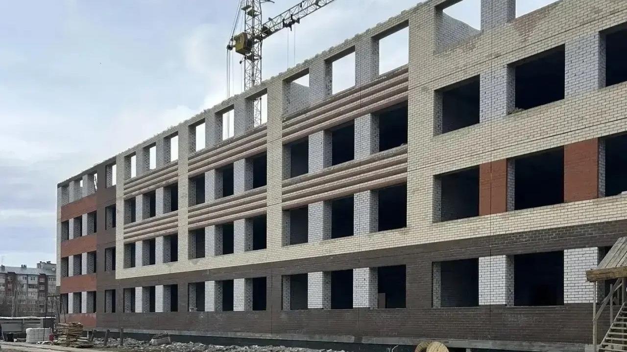 Здание «растёт» этаж за этажом. Внутри уже вырисовываются будущие классы и коридоры.