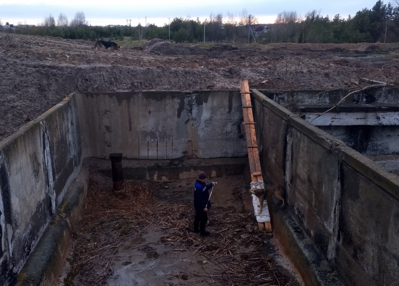 Вчера, 28 апреля, к волонтерам из группы «Верный хвостик» обратились за помощью. На территории очистных сооружений в технической яме глубиной около 5 метров была обнаружена собака. Нашли ее благодаря второму псу, который ждал наверху.