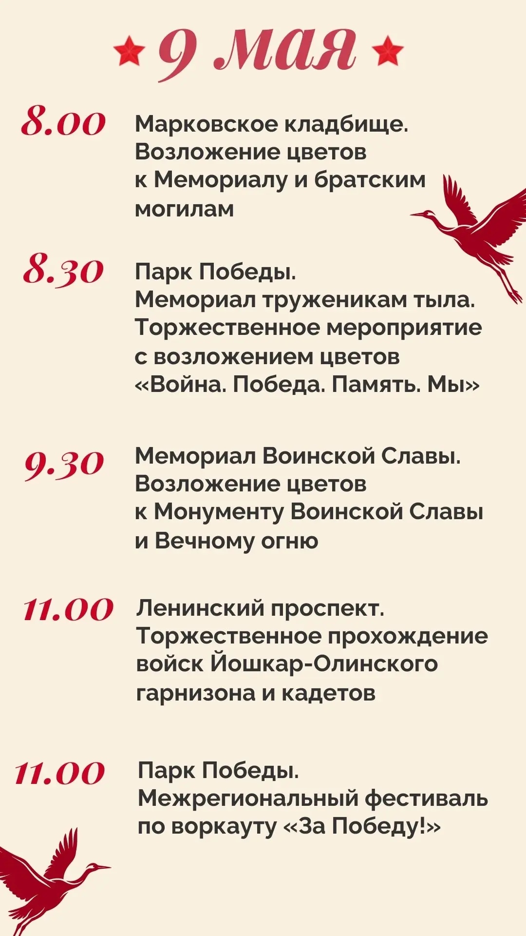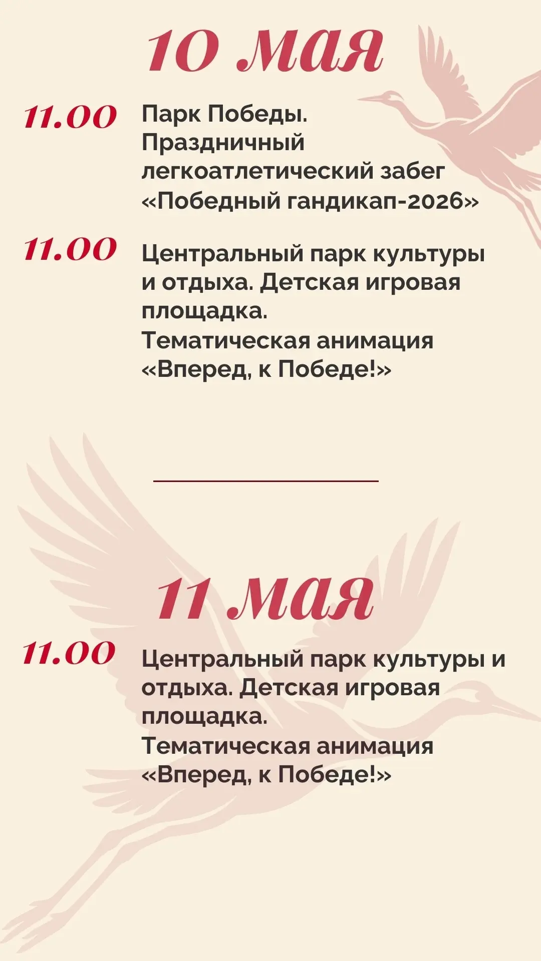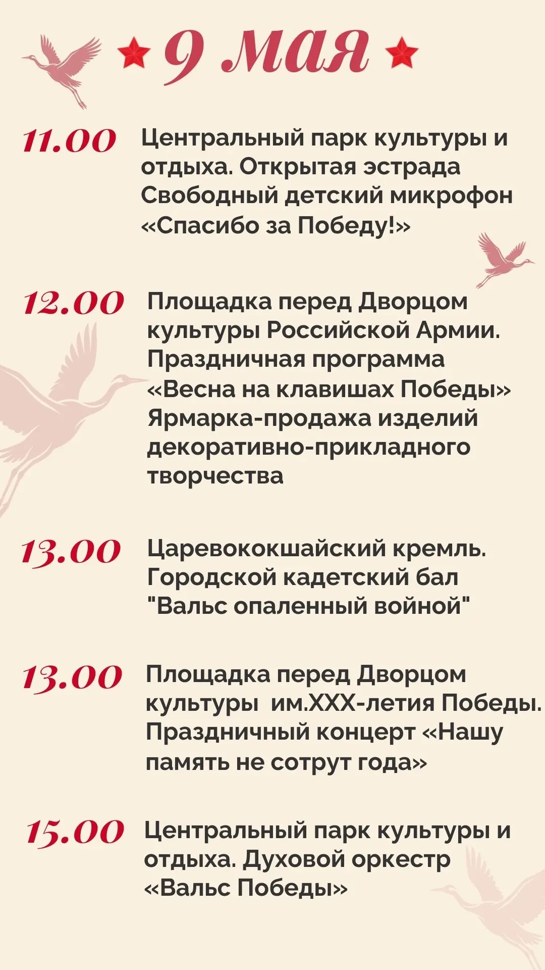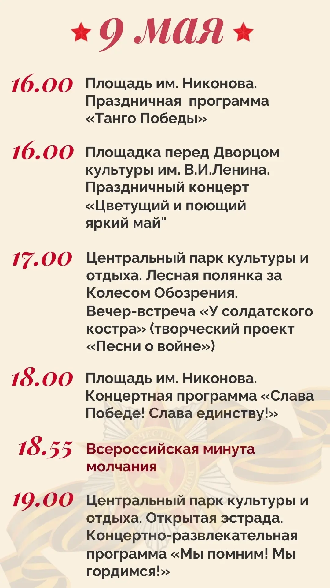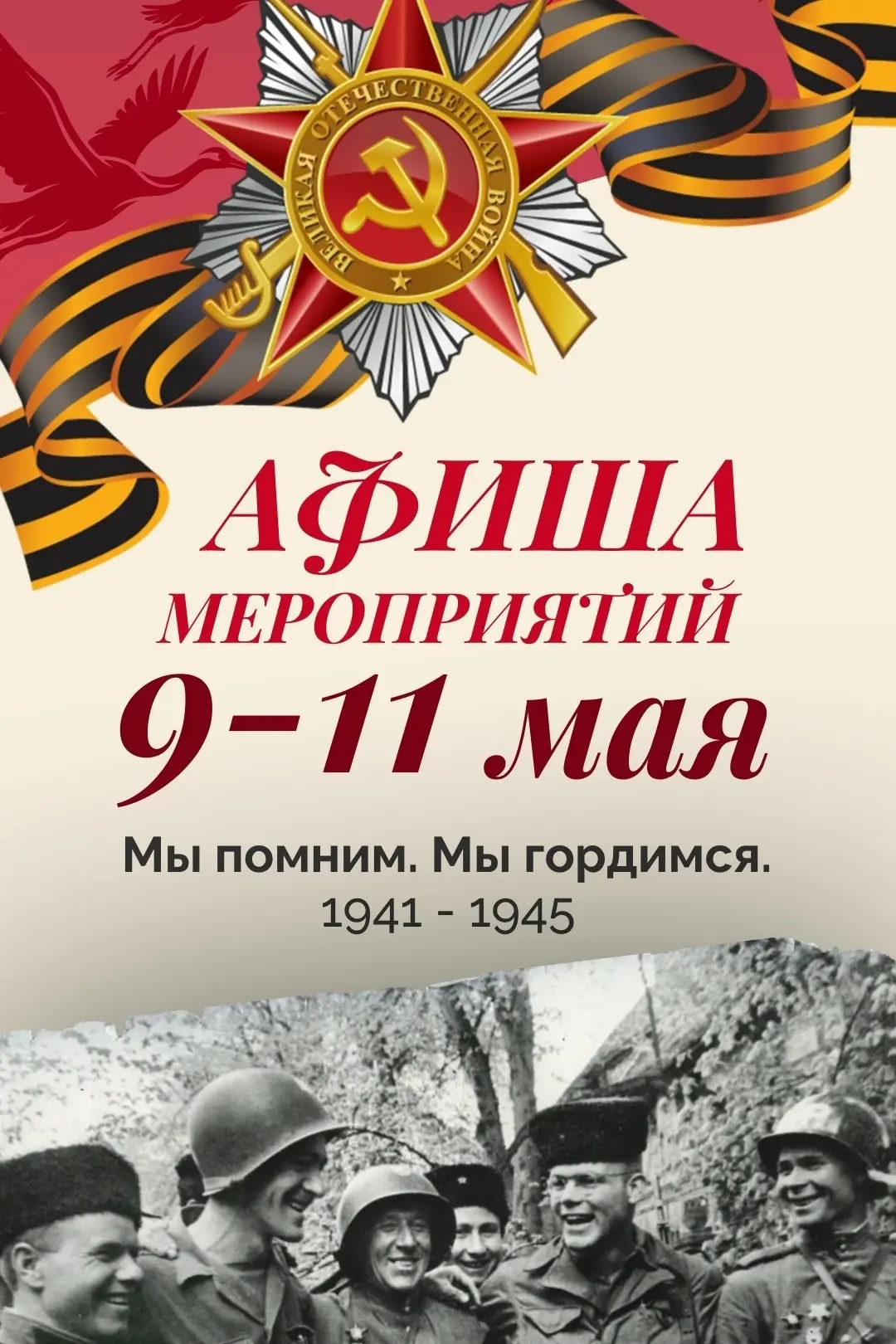 Делимся с вами программой событий, которые запланированы с 9 по 11 мая! В эти дни мы вместе вспомним героев, подаривших нам мир, и почтим их память.