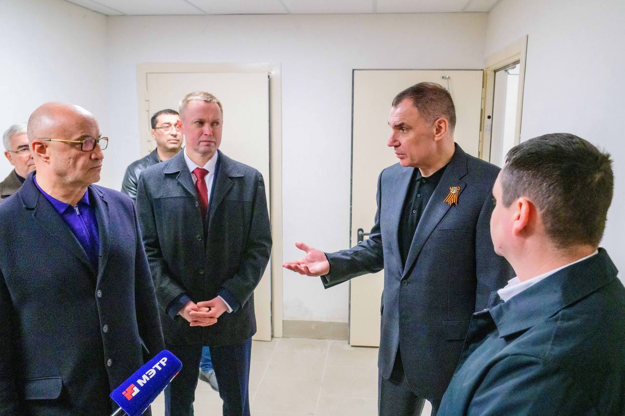 В ходе визита он осмотрел выполненные работы по благоустройству территории, включая детскую площадку, автомобильную парковку и фасад здания, а также оценил готовность технических помещений.